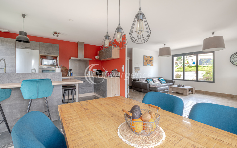 L'entrée dessert une très belle pièce à vivre de 50 m² comprenant un espace salon, salle à manger et cuisine dinatoire aménagée et équipée très fonctionnelle. Dans le prolongement du séjour vous découvrez un bureau idéal pour le télétravail et pouvant faire office de chambre d'appoint. L'espace nuit se compose de 3 chambres de 11 à 12m² avec dressing, une salle de bains avec douche et un wc.