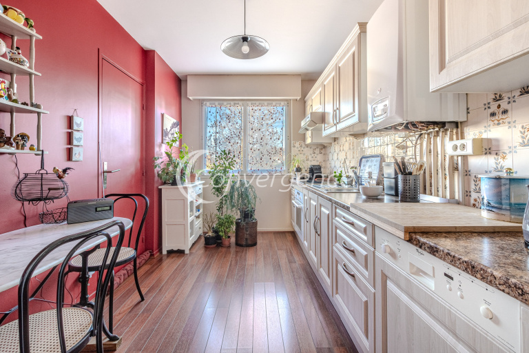 Limoges sud, au sein d'une résidence calme et très bien entretenue, appréciez cet appartement T3 à la décoration soignée de 70 m² aménagé en très grand T2 avec son séjour double de 32 m² (possibilité de recréer la 2ème chambre simplement). L'entrée dessert le séjour qui profite d'une agréable terrasse de 8 m² équipée d'un store et exposée ouest, idéale pour profiter d'un repas extérieur. La cuisine séparée aménagée et équipée dispose d'un cellier très pratique. Côté nuit,nous retrouvons une chambre de 11.3 m², une salle d'eau, un wc séparé et un grand placard. Appartement situé au 1er étage sans ascenseur. Résidence sécurisée. Une place de parking privée en sous-sol et une cave viennent compléter ce bien. Chauffage individuel. Faibles charges (88.5 € / mois comprenant l'eau froide avec sous compteur). Ligne 4 de la TCL. Intermarché face à la copropriété. Décoration soignée.