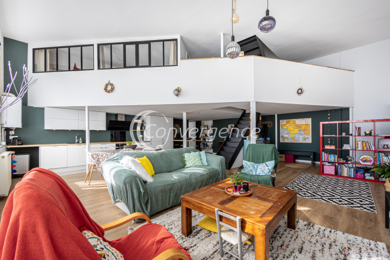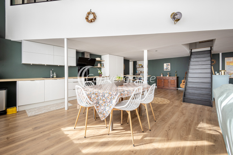 D’une surface de 109 m² loi Carrez (environ 130 m² au sol), l’appartement se situe au 1er étage. Il s’organise sur plusieurs niveaux.