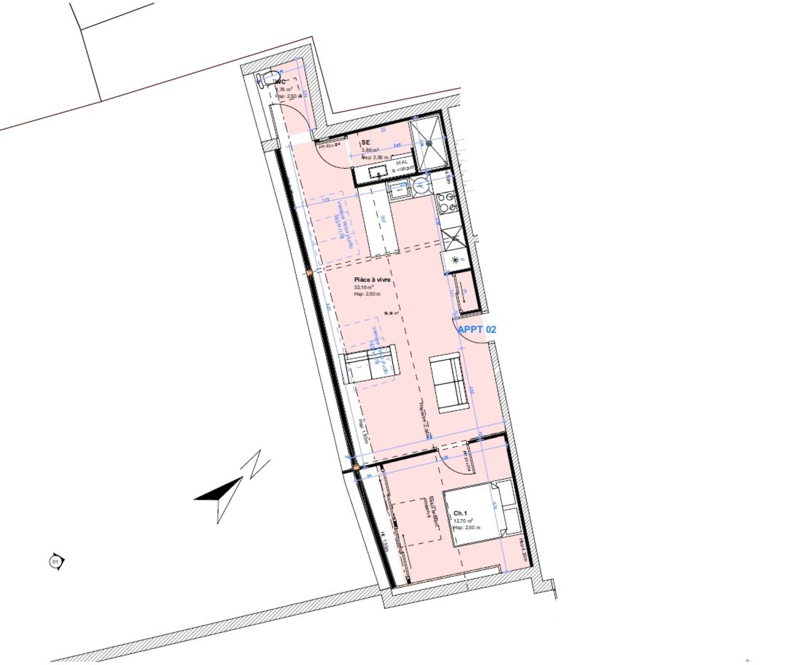 - Cuisine équipée, climatisation, parquet, douche à l’italienne