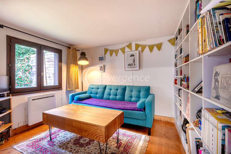 Dans une petite copropriété de 3 logements, ce duplex rénové se compose d'une cuisine ouverte, d'un salon lumineux et d'un beau séjour à colombages donnant accès au jardin fleuri, exposé sud ouest avec cabanon. Le premier étage dispose d'une chambre avec rangement côté jardin et d'une seconde chambre côté cour avec une mezzanine de 7m2. Une salle d'eau intégralement rénovée en 2021 et un wc séparé viennent completer l’ensemble. Au rez-de-chaussée une cave pouvant servir de local à vélo.
