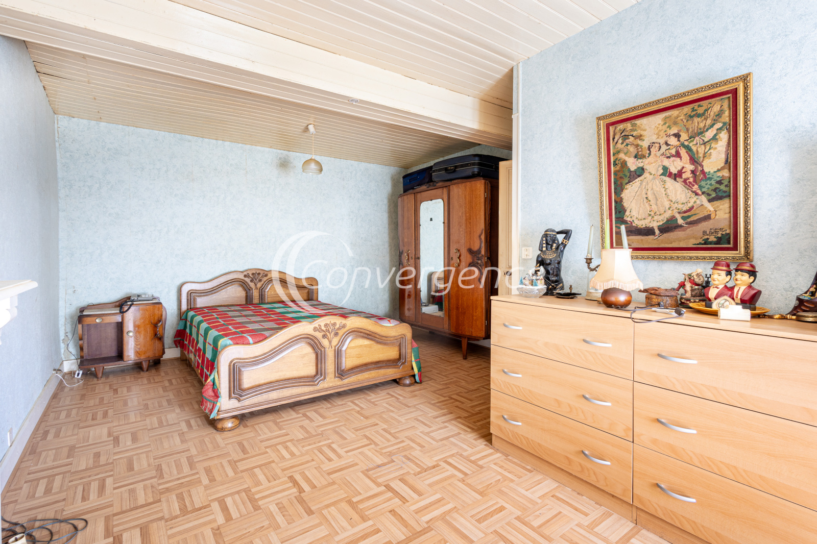 À l’étage, vous trouverez une chambre, accompagnée d’une petite pièce pouvant être aménagée en dressing, bureau ou chambre d’appoint.