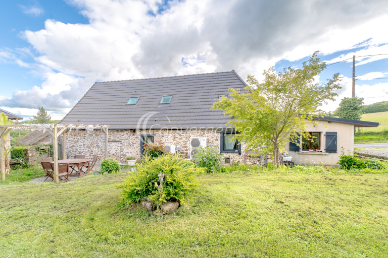 Coup de coeur assuré pour cette maison de 131 m² intégralement rénovée avec goût située dans un hameau calme de Glanges. La maison dispose d'une entrée avec espace buanderie très pratique, un charmant salon dans un esprit très cosy avec poêle à bois, une cuisine dinatoire de 40 m², une chambre et un wc (douche possible en rez de chaussée). A l'étage, 3 chambres mansardées, dont une chambre avec dressing et une suite parentale disposant de sa salle d'eau privative avec wc. En complément, une salle d'eau commune avec wc également. Tous les volumes de cette maison ont été parfaitement exploités. Pour votre confort, de nombreux travaux réalisés par professionnels ont été réalisés en 2019 : une pompe à chaleur air/eau, installation complète intégrant les radiateurs et la plomberie, le poêle à bois, toutes les menuiseries sont en aluminium triple vitrage oscillo battant avec stores intégrés pour occulter. En 2021, la toiture a été refaite avec pare pluie, porte d'entrée remplacée. Electricité mise aux normes. Assainissement individuel refait en 2006. Maison reliée à la fibre. Un carport 2 voitures et un atelier de 21 m² viennent compléter ce bien. Ecole primaire et maternelle à Glanges. Ramassage scolaire prévu également pour le collège de rattachement (Saint Germain les Belles). Accès A20 à 10 minutes ainsi qu'à tous les commerces de Magnac Bourg (boulangerie, boucherie, supermarché, pharmacie...).