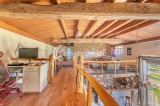 Au premier étage, une mezzanine de 30 m² qui fait actuellement office de salle cinéma mais qui peut se refermer pour une 4ème chambre, un espace bureau qui surplombe le salon. Trois chambres de 11m², 15m² et 14.8 m². Salle de bains avec baignoire d'angle et douche. Un wc.