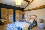 Au premier, une belle chambre avec poutres apparentes de 16m² avec rangements, une salle d'eau rénovée en 2023 avec baignoire et wc, une grande mezzanine avec bibliothèque faite sur mesure, donnant accès au jardin arboré et à la deuxième terrasse. Deux chambres de belles tailles avec rangements et une salle d'eau avec wc. Viennent s'ajouter à la propriété un large garage, une dépendance en pierre à rénover d'environ 55m² donnant sur cour, une petite porcherie servant de cabanon de jardin. Exposition Sud / Sud-Ouest.