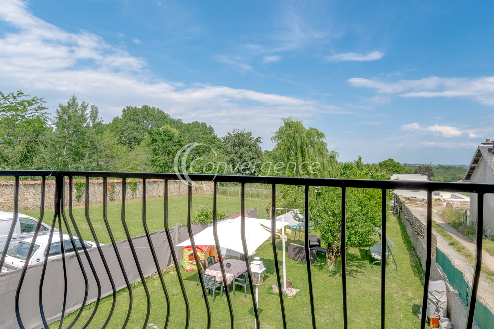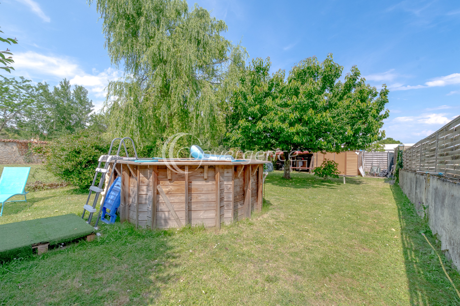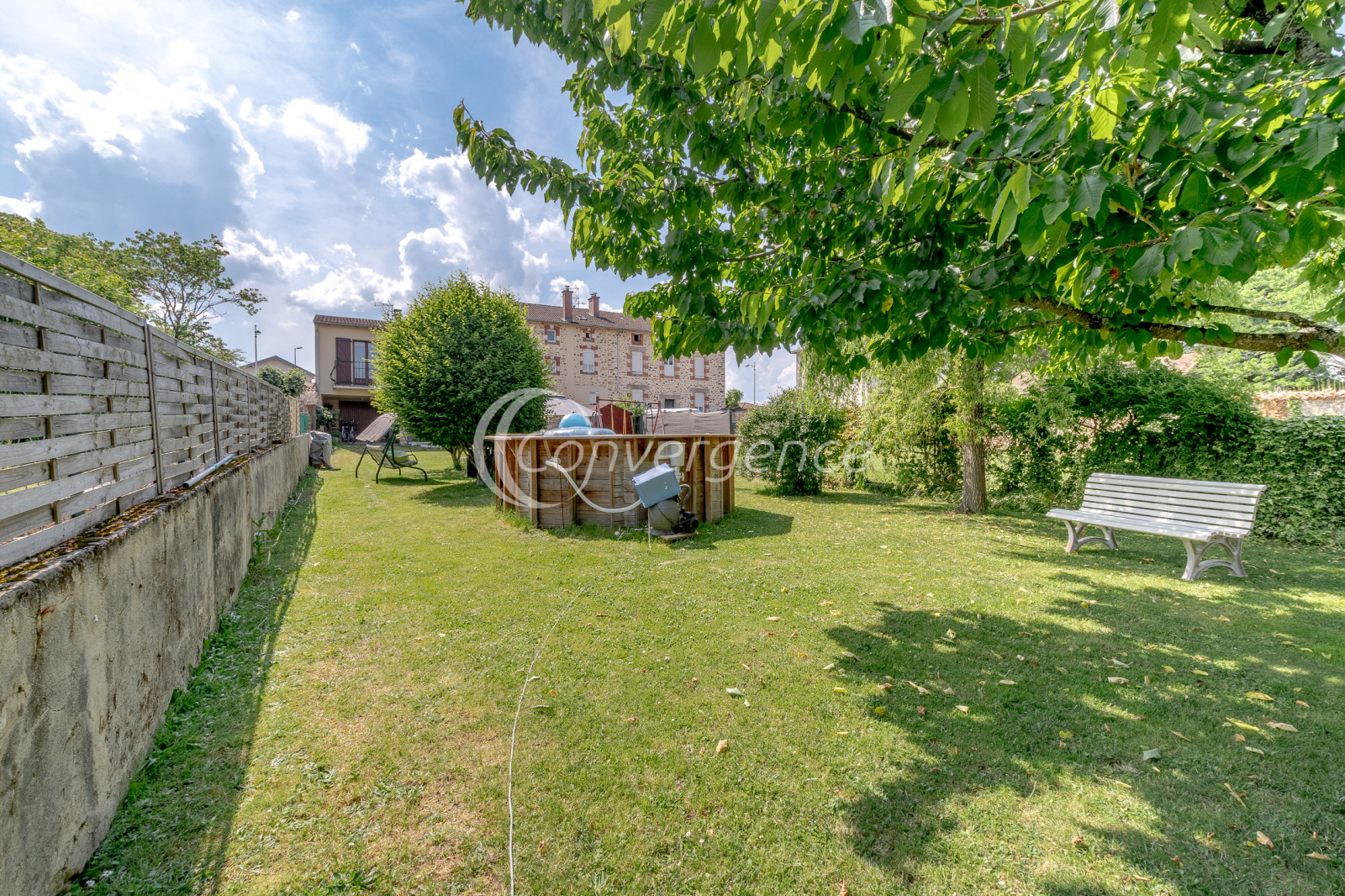 Elle bénéficie d'un sous-sol complet avec un garage traversant de 50m² avec porte motorisée, d'une spacieuse cuisine d'été donnant accès à la terrasse et au jardin entièrement clos avec piscine hors sol.