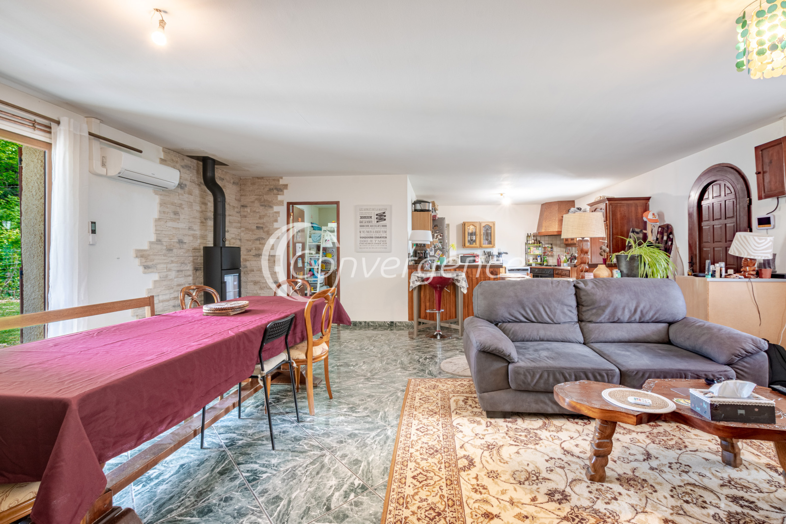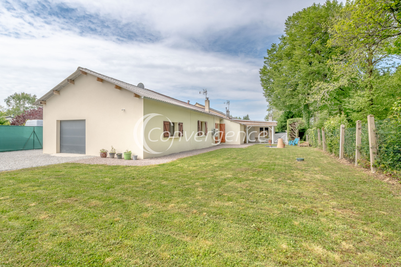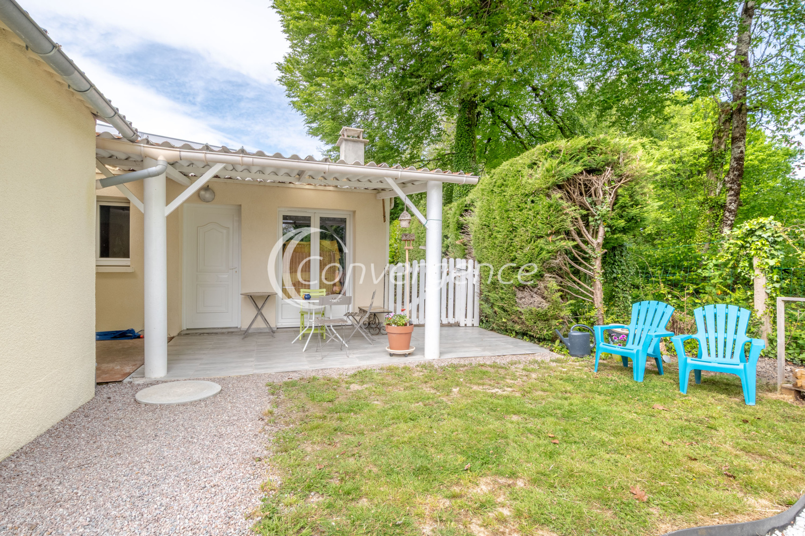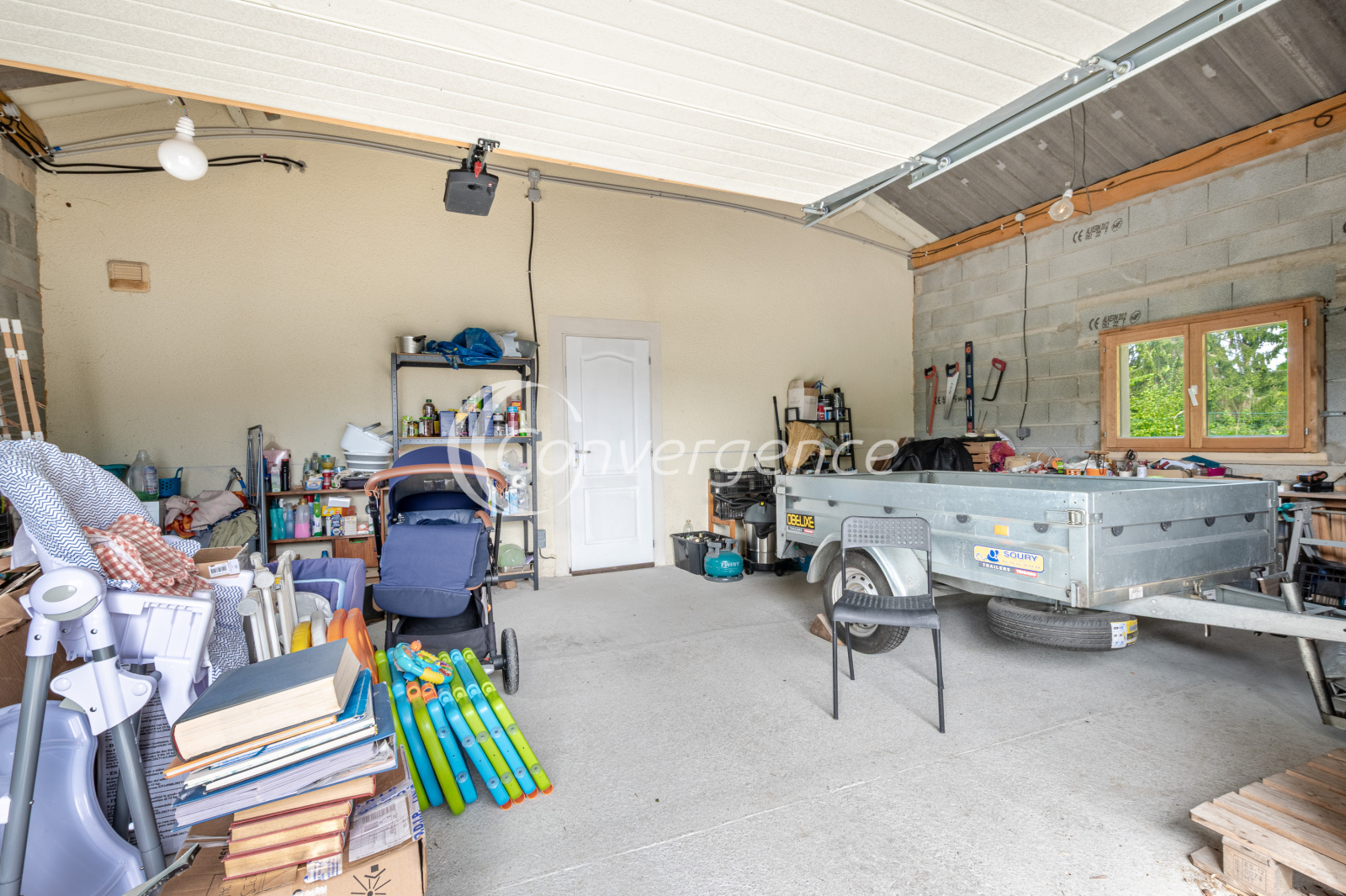 La maison principale comprenant une pièce de vie 45m² donnant sur une terrasse couverte, une grande cuisine ouverte, trois chambres de belle taille et une salle d'eau avec WC. Vient compléter le bien, un garage avec porte motorisée de 40m², construction de 2022. Poêle à bois de 2024 et pompe à chaleur de 2022. Assainissement de 2022.