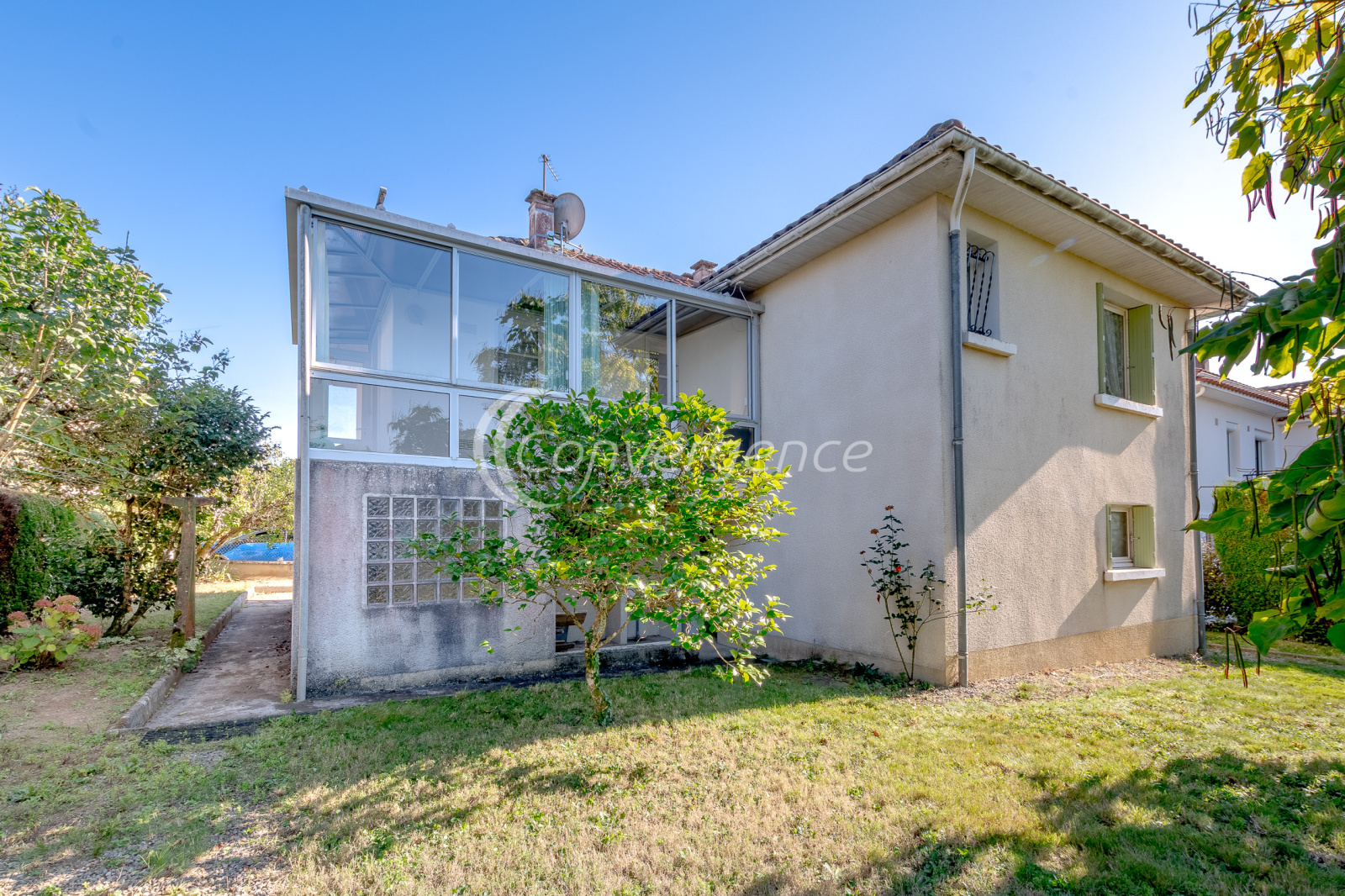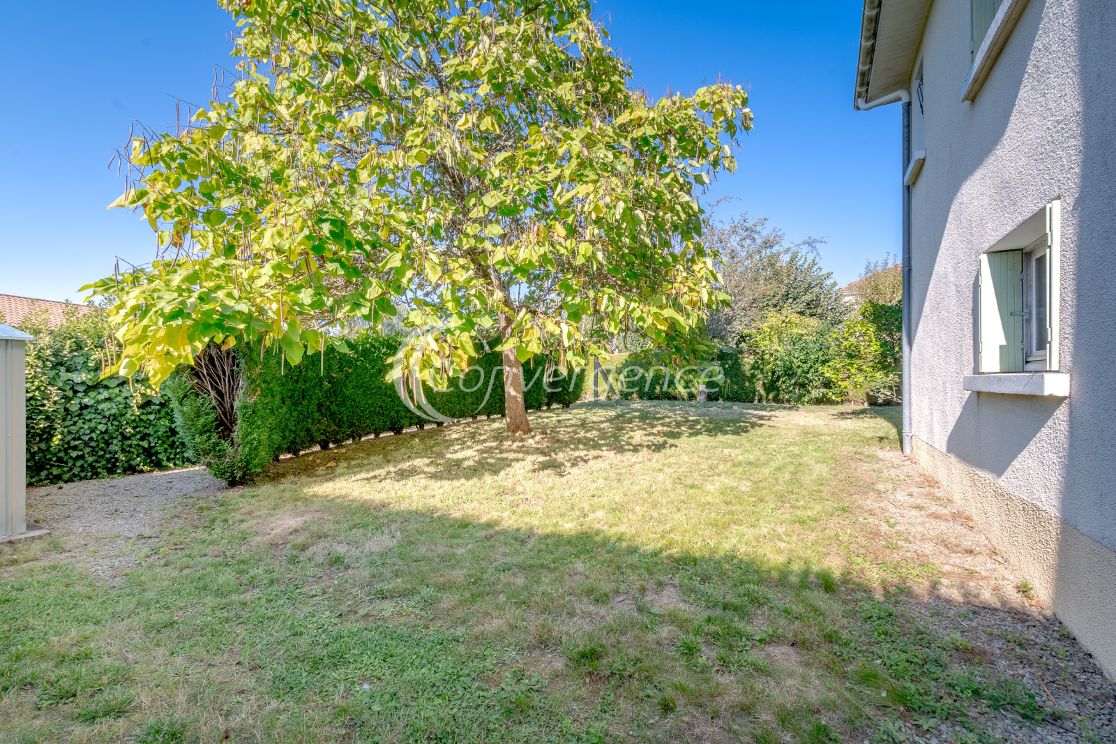 Le rez-de-chaussée idéalement aménagé offre la possibilté d'un espace indépendant. Il comprend une cuisine d'été, une chambre, une salle d'eau avec wc et une autre pièce. Le tout donnant accès de plain-pied au jardin clos et arboré. Un garage complète ce niveau.