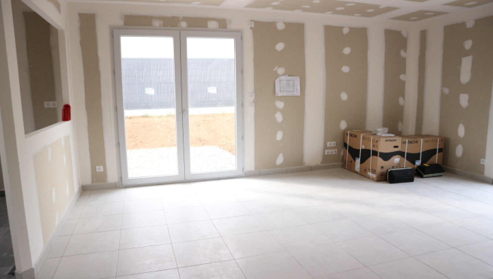 Maison neuve de 86 m² livrée neuve. Cette maison réceptionnée élevée sur sous-sol complet comprend une entrée, un séjour donnant sur un espace avec cuisine aménagée (meubles neufs Ixina fournis, électroménager à prévoir), le couloir dessert trois chambres dont une avec salle d'eau privée avec wc, une salle de bains indépendante avec chauffe eau thermodynamique, un wc séparé. Sous-sol complet, porte de garage motorisable. Pompe à chaleur pour l'espace à vivre, radiateurs électriques pour le coin nuit. La maison est cloturée sur les côtés, reste à prévoir la cloture en fond de parcelle. Maison raccordée au tout à l'égout. Les murs sont livrés prêts à poncer et à peindre. Les placards sont à aménager. Le sous-sol n'est pas betonné.