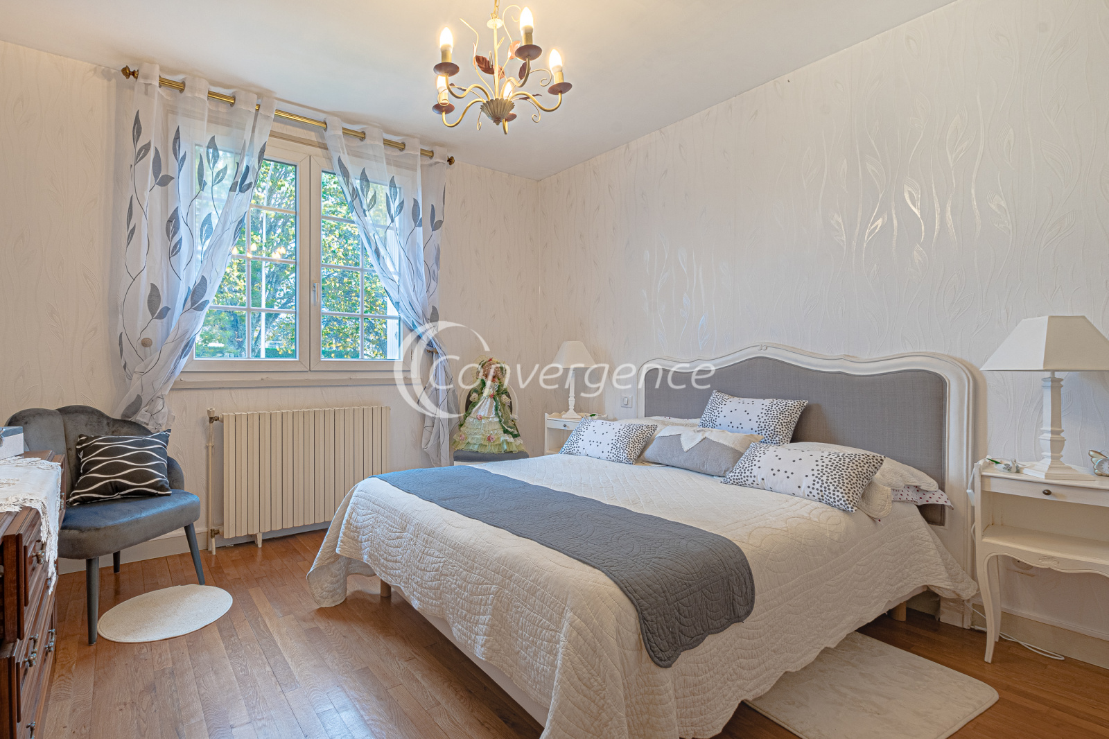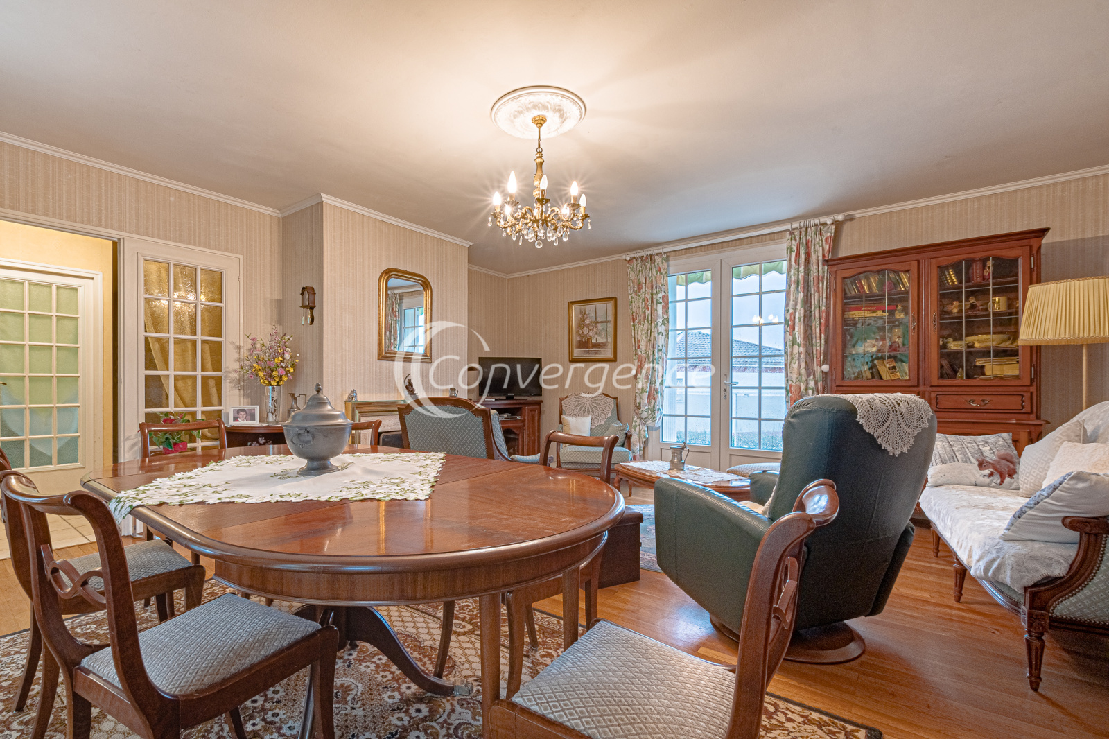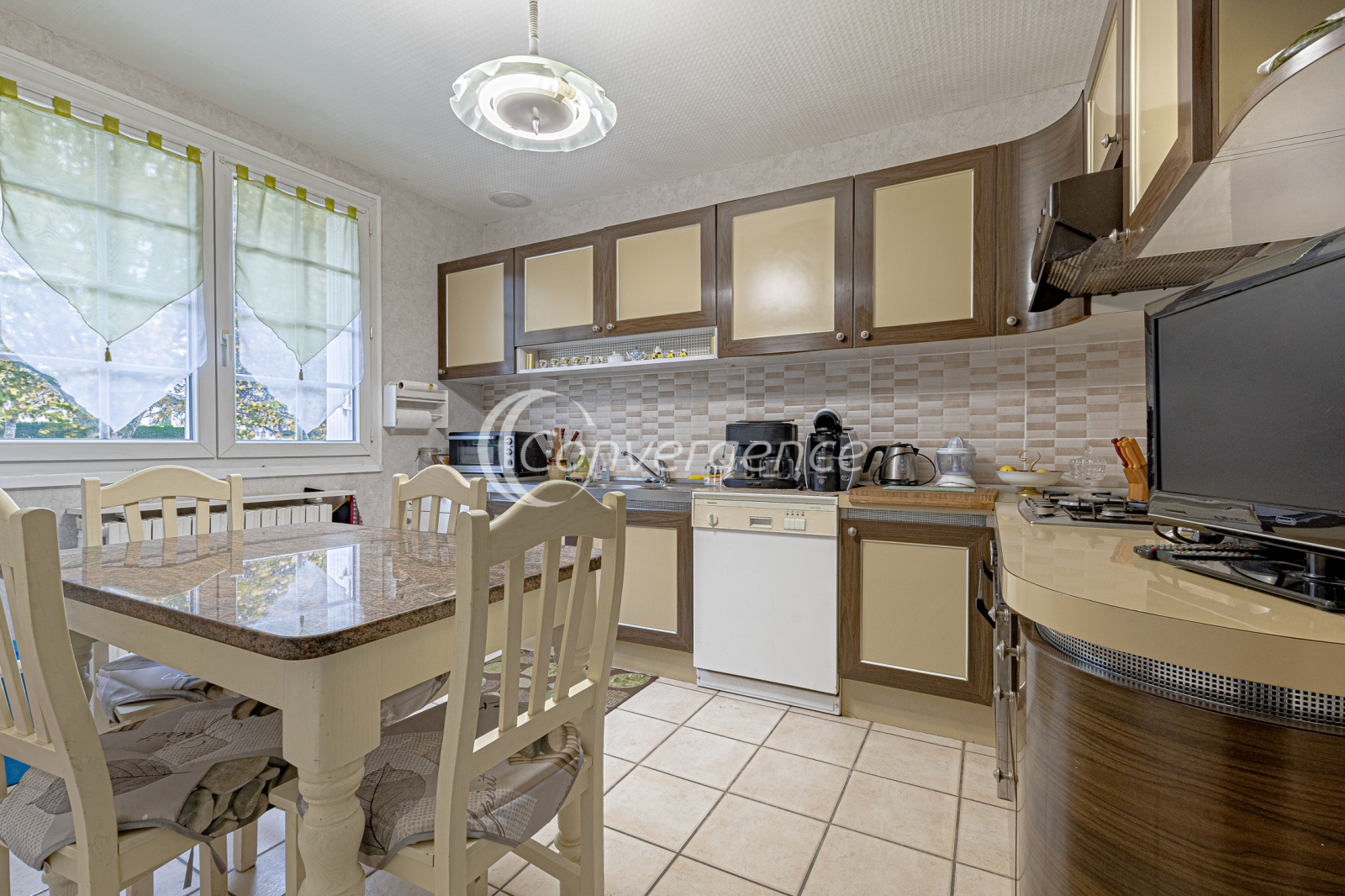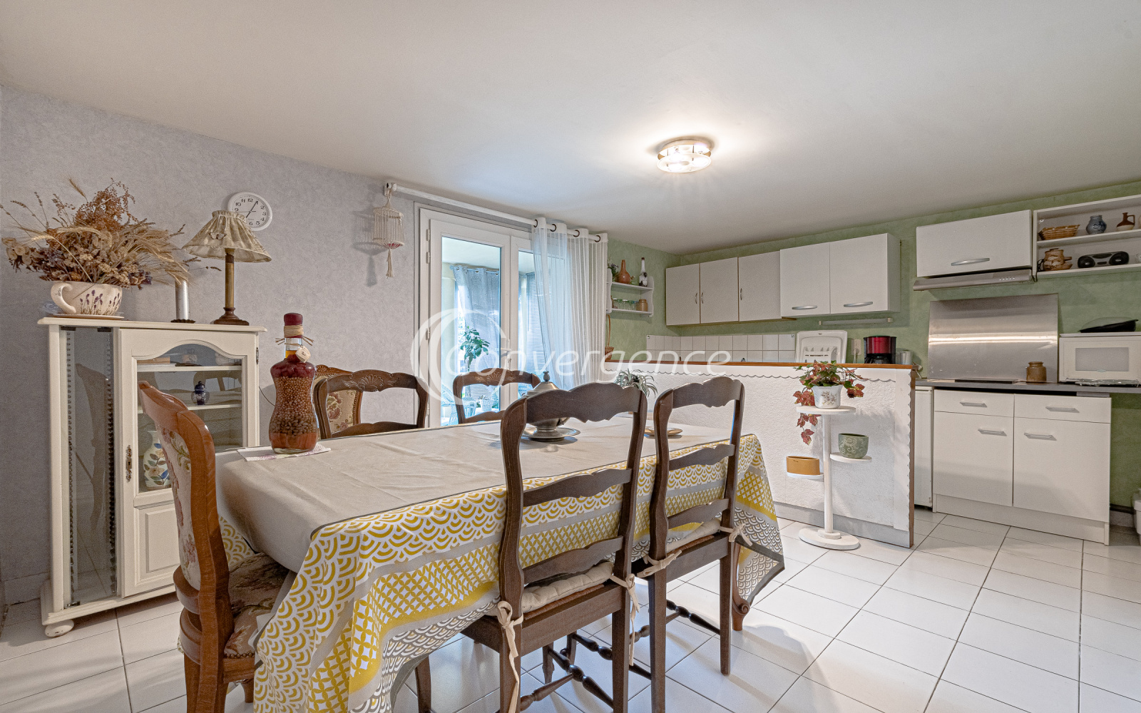 En exclusivité chez Convergence, cette agréable maison de 121 m² est idéalement située en bout d'impasse. Accessible de plain-pied, elle comprend une entrée avec placard, un salon confortable avec parquet en chêne donnant sur une terrasse exposée plein sud, une cuisine séparée et équipée, deux grandes chambres avec rangements, une salle de bains récente avec baignoire et douche, wc séparés.