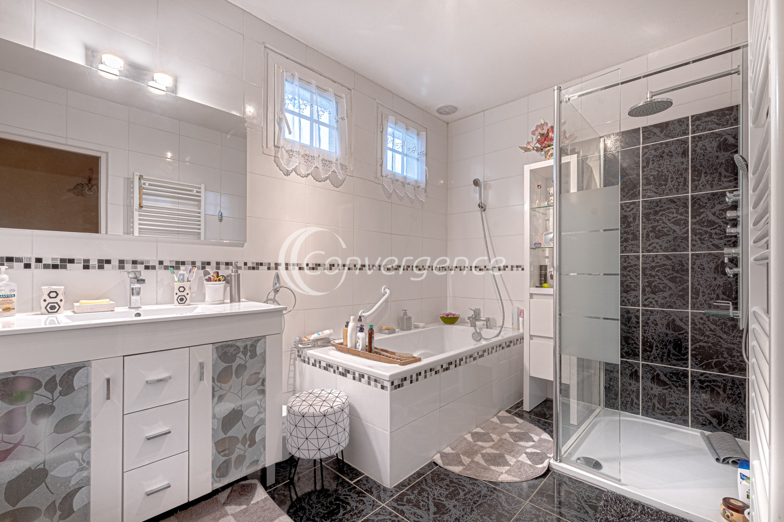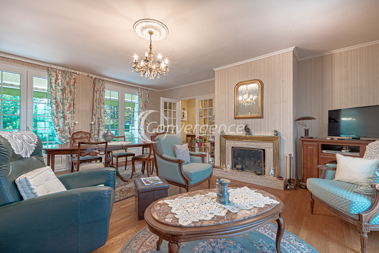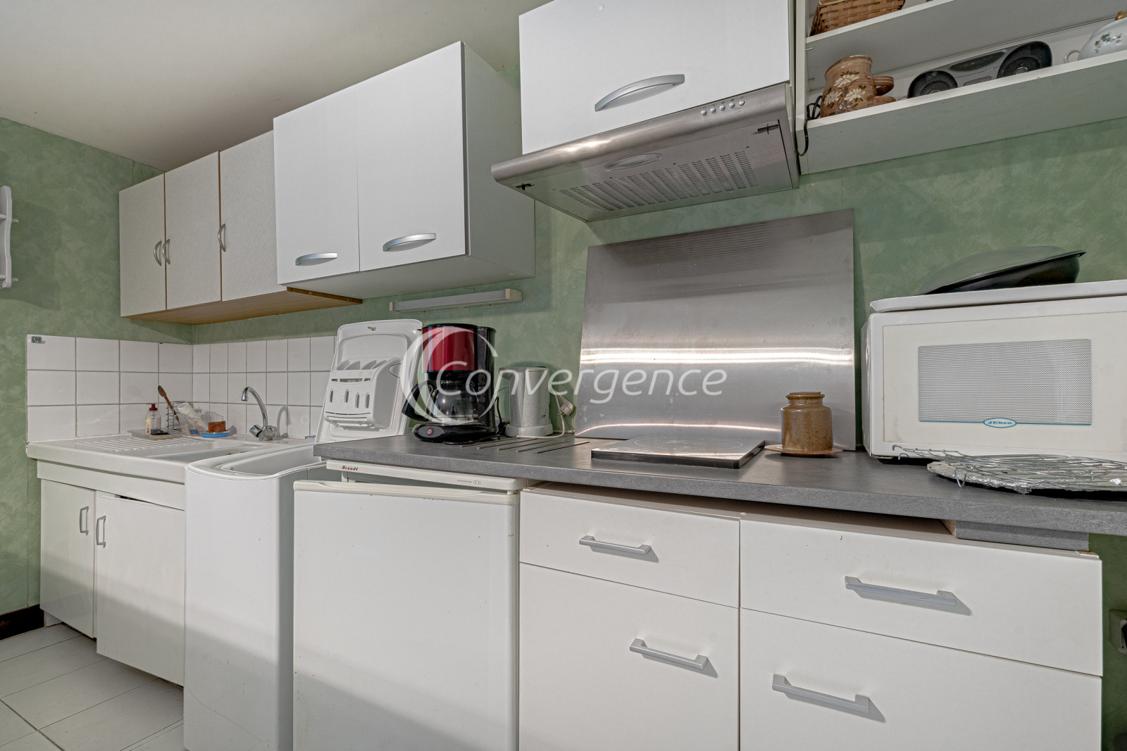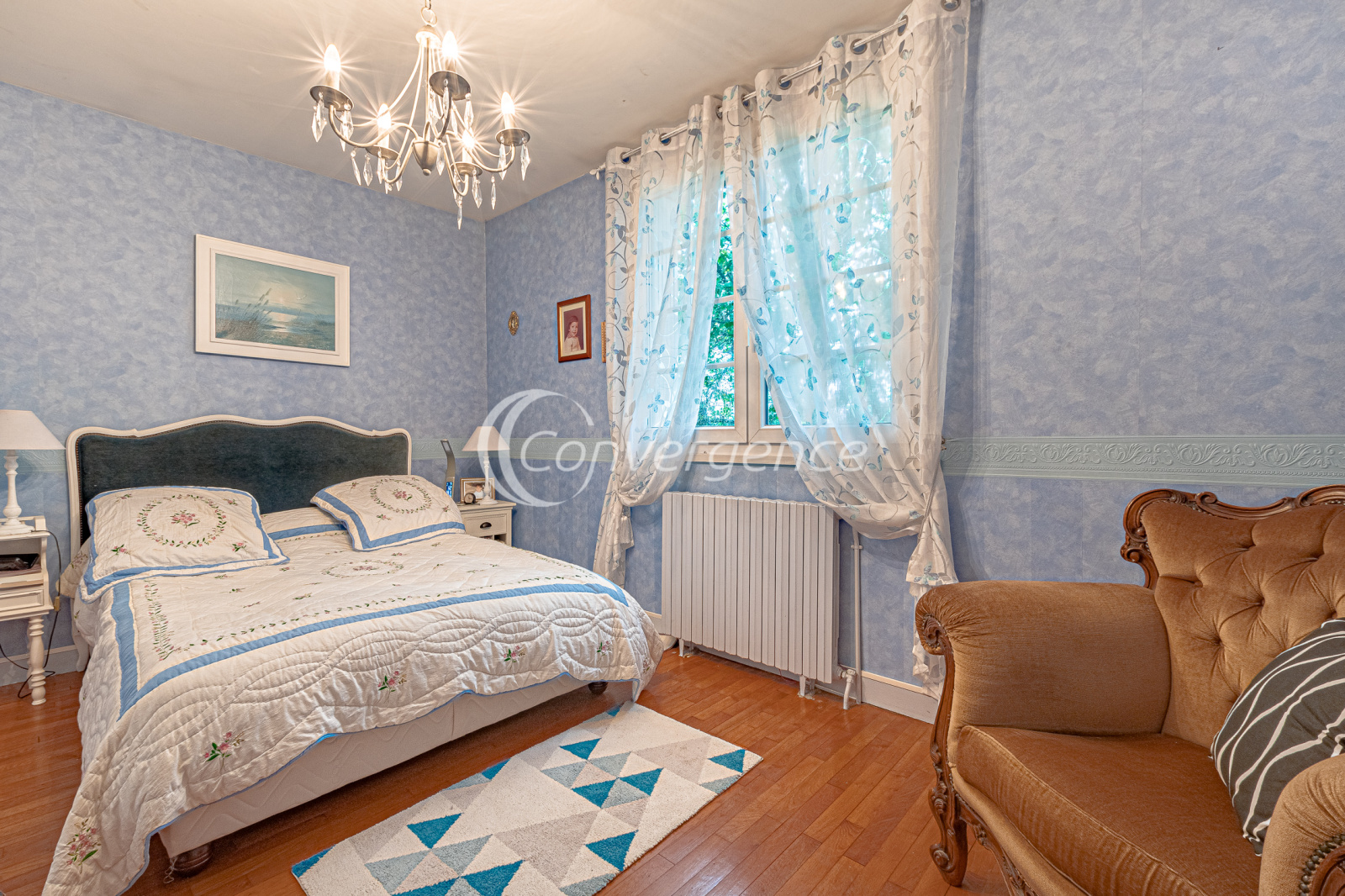 En exclusivité chez Convergence, cette agréable maison de 121 m² est idéalement située en bout d'impasse. Accessible de plain-pied, elle comprend une entrée avec placard, un salon confortable avec parquet en chêne donnant sur une terrasse exposée plein sud, une cuisine séparée et équipée, deux grandes chambres avec rangements, une salle de bains récente avec baignoire et douche, wc séparés.