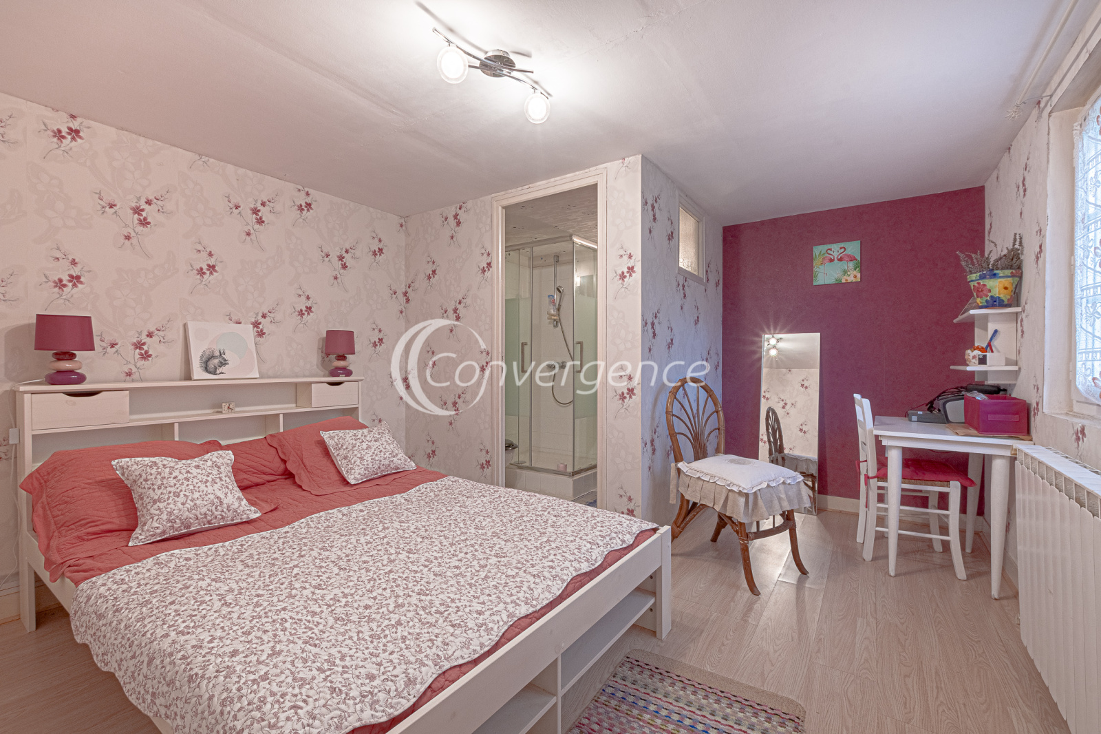 En rez de jardin, logement de 38 m² pouvant être indépendant parfait pour adolescent, personne âgée ou pour loger de la famille. Vous disposez d'un séjour/cuisine avec accès à une véranda, une chambre et sa salle d'eau privée, un wc. Buanderie, chaufferie, cave et vaste garage de 26 m².