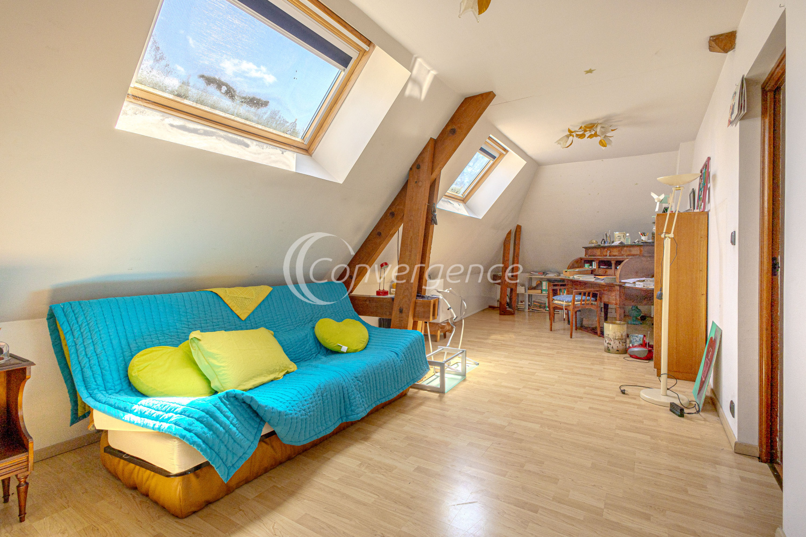 Sous-sol complet avec le garage de plus de 70m2, une grande cave, une chaufferie, et une pièce chauffée avec fenêtre, idéale pouyr recevoir ou pour un bureau.. Chauffage au gaz, chaudière récente. Double vitrage PVC.