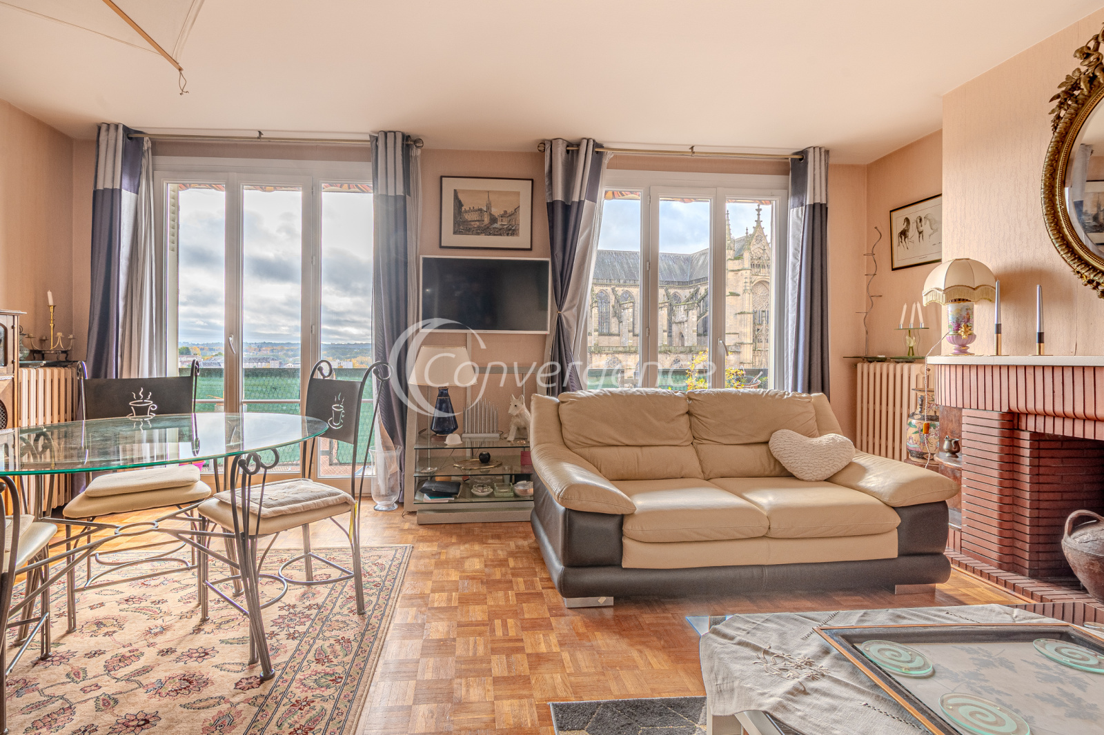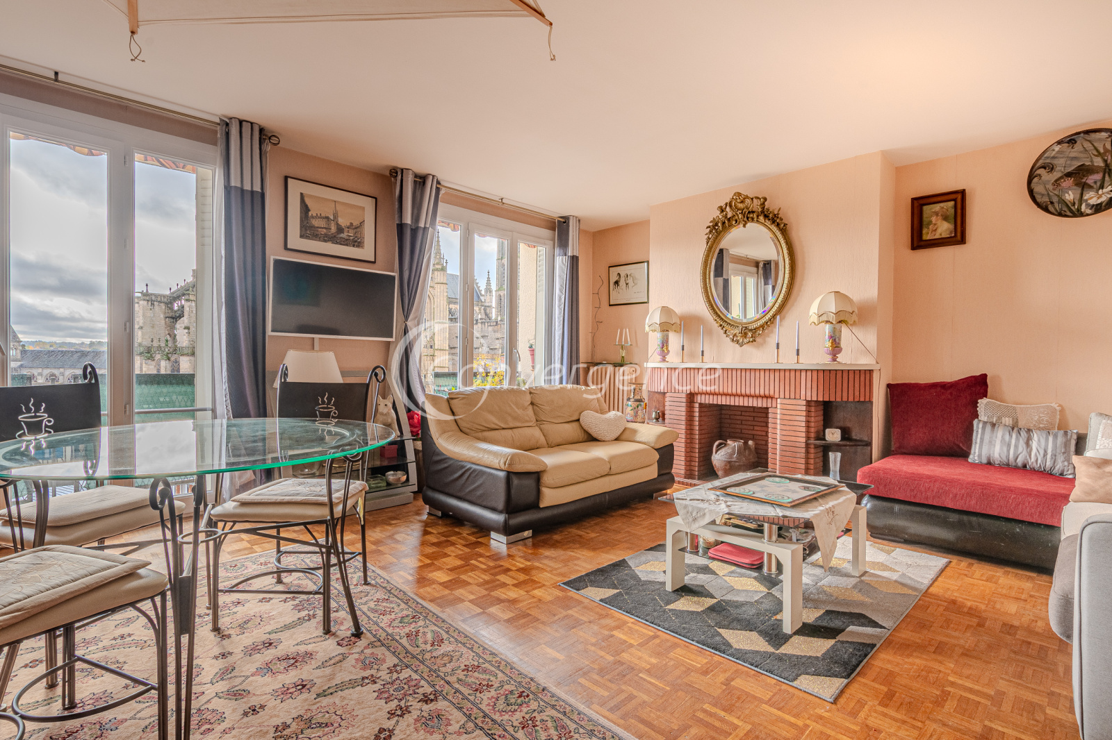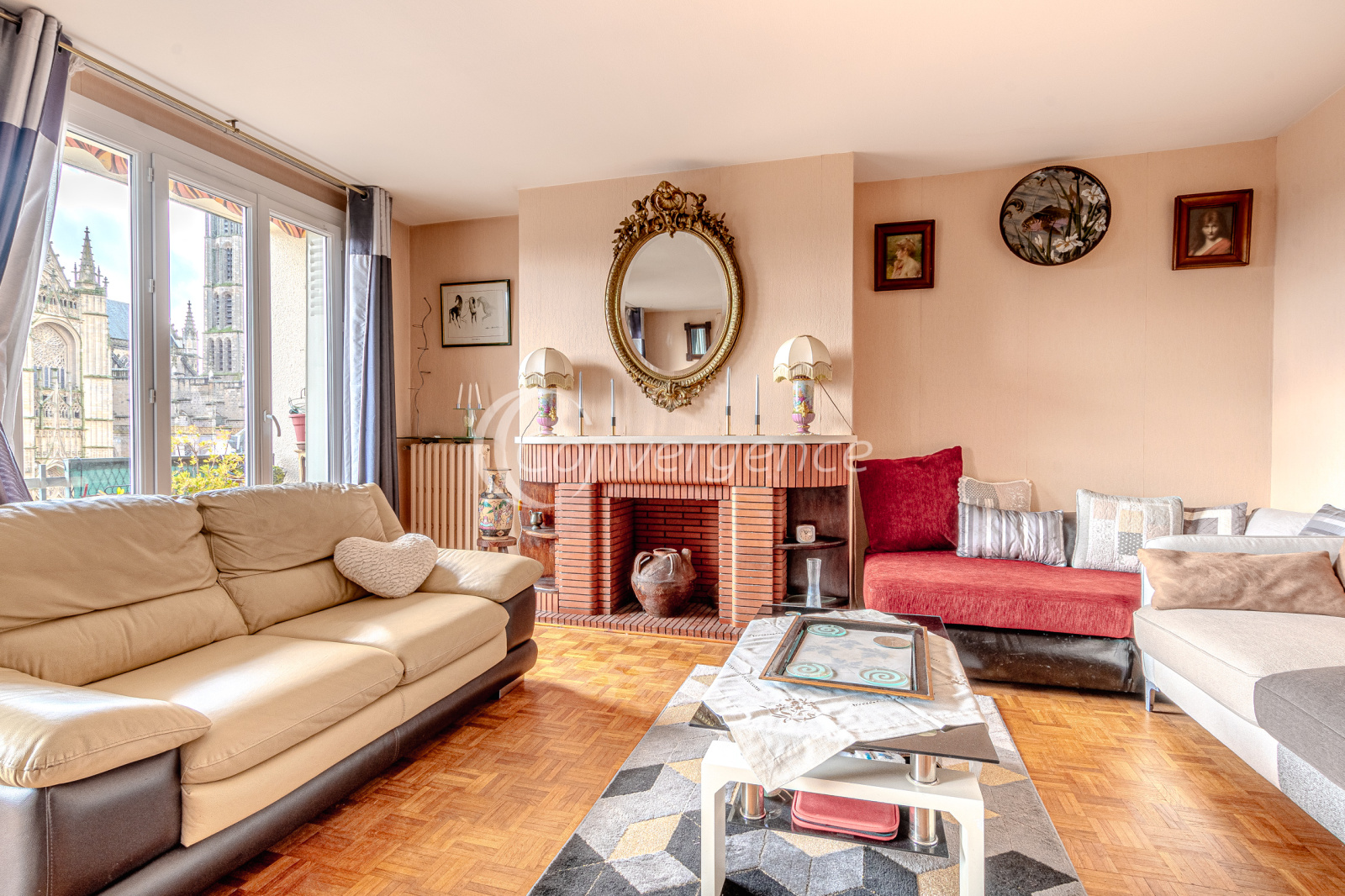Au 3ème et dernier étage avec ascenseur, cadre exceptionnel pour cet appartement lumineux et traversant de 74 m². Depuis son séjour de 28 m², vous profitez d'un balcon de 5 m², une vue exposée Sud, dégagée et privilégiée sur la Cathédrale de Limoges. L'entrée est équipée de rangements, la cuisine séparée est aménagée et équipée. Côté nuit, vous disposez de deux chambres de 10 m² et 12.6 m², une salle d'eau et un wc séparé. Une cave vient compléter ce bien. Deux places de parking louées au syndic directement sont situées sous la résidence. Possibilité de poursuivre cette location (deux places pour 49 € / mois). Les charges comprennent le chauffage, l'eau chaude, l'eau froide, le gardien, l'ascenseur, les espaces verts, les communs. LES PLUS : dernier étage, ascenseur, balcon, appartement traversant et lumineux, vue Cathédrale.