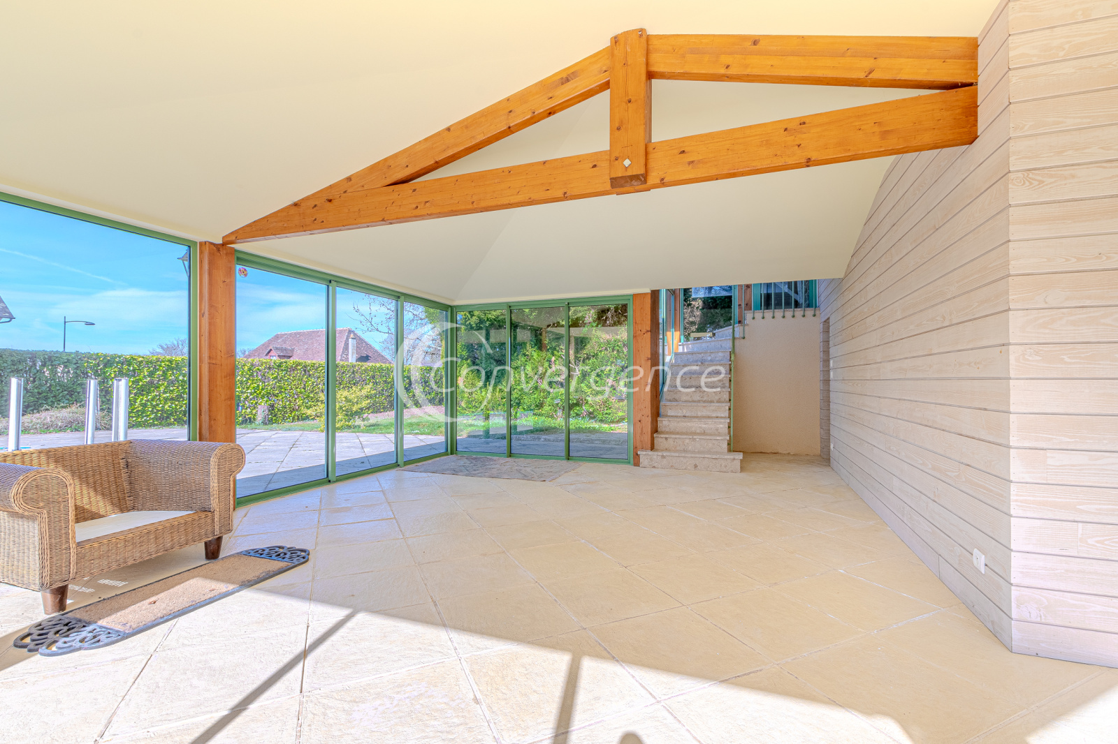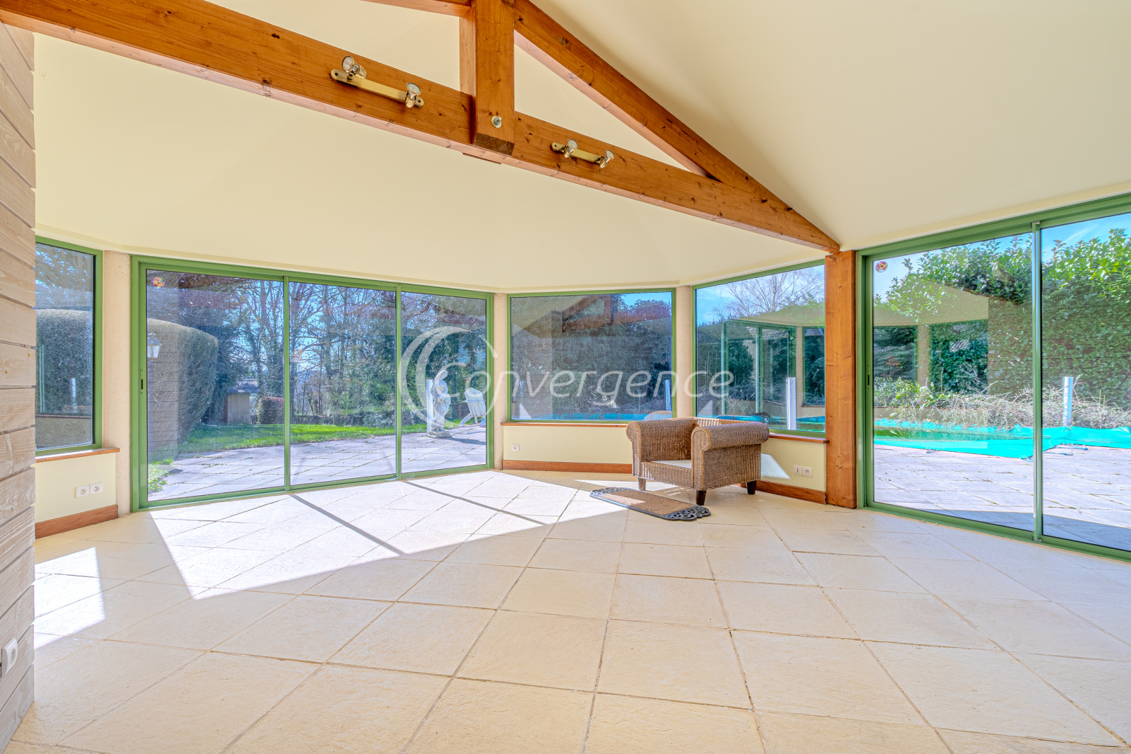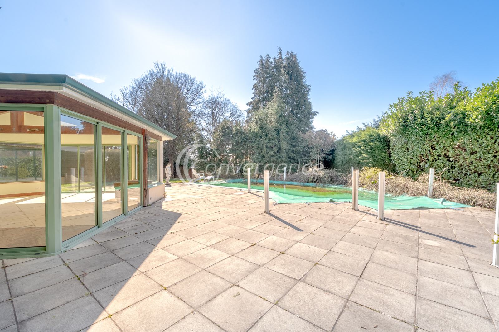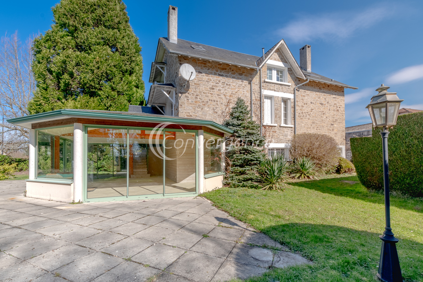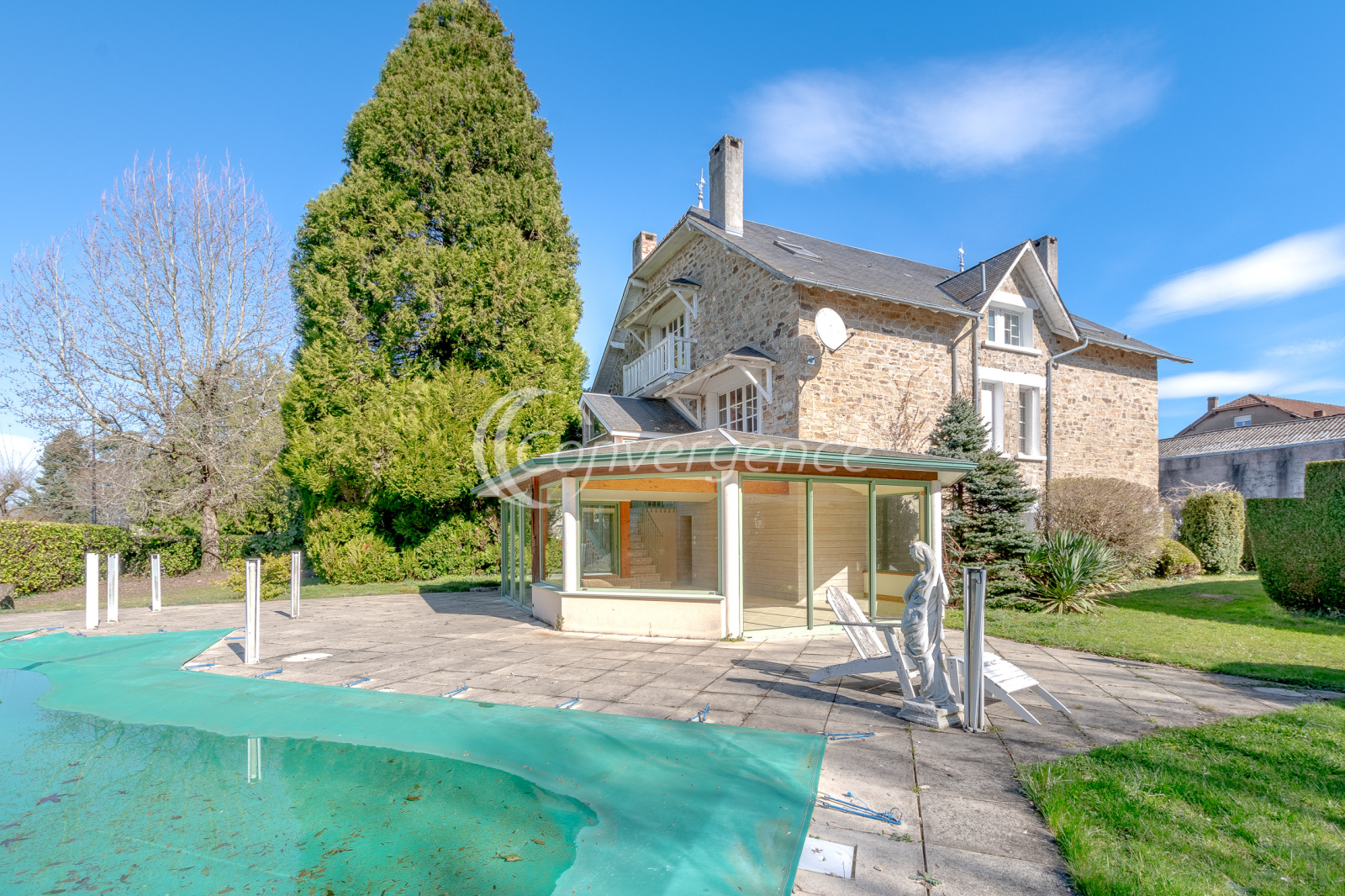 Idéalement située entre Brive et Limoges, maison de 171 m² située au coeur de Saint Germain les belles. On y retrouve le charme de l'ancien, de beaux volumes, un grand parc avec piscine au sel chauffée, un studio indépendant de 28 m², une véranda lumineuse et spacieuse avec espace cuisine, idéale pour vos repas d'été. La maison présente une grande entrée qui distribue un salon, une salle à manger, une cuisine séparée, une chambre avec salle d'eau privée avec wc, un bureau et une buanderie. A l'étage la mezzanine dessert 4 chambres dont une avec bureau privatif, une salle d'eau commune avec dressing, un wc. En rez de jardin, grande véranda de 35 m² profitant d'un chauffage au sol par pompe à chaleur air/eau. La véranda est équipée d'une kitchenette et d'un wc. Le plus, un studio indépendant de 28 m² avec wc, douche et cuisine très adapté pour du locatif, recevoir ou pour une profession libérale. Piscine chauffée au sel 5 x 10 sur un beau parc arboré de 2300 m². Maison reliée au tout à l'égout, chauffage par pompe à chaleur installée il y a 10 ans (chaudière fioul encore en fonction au besoin). Un garage de 18 m², une cave et un abri de jardin viennent compléter ce bien. Ecole et collège à pied. Gare sncf à 1,3 km.
