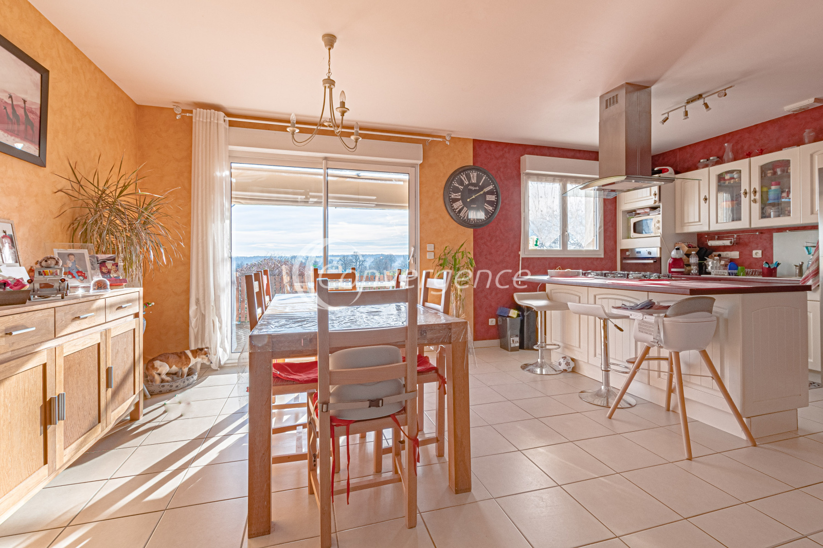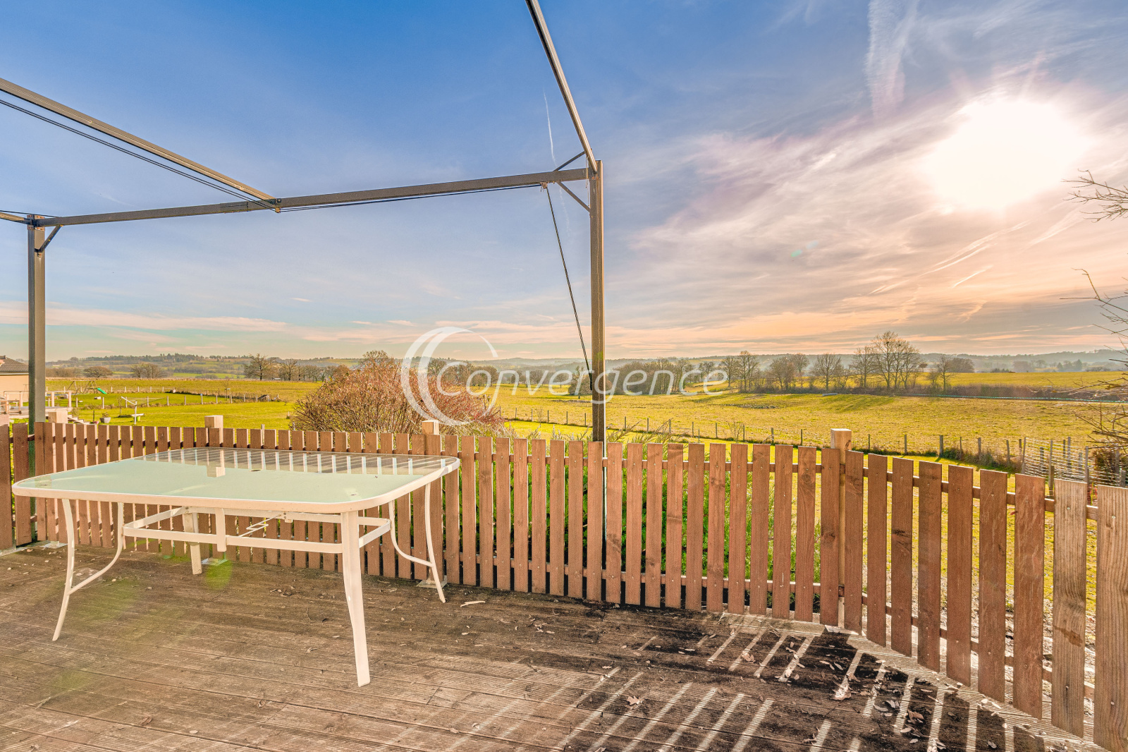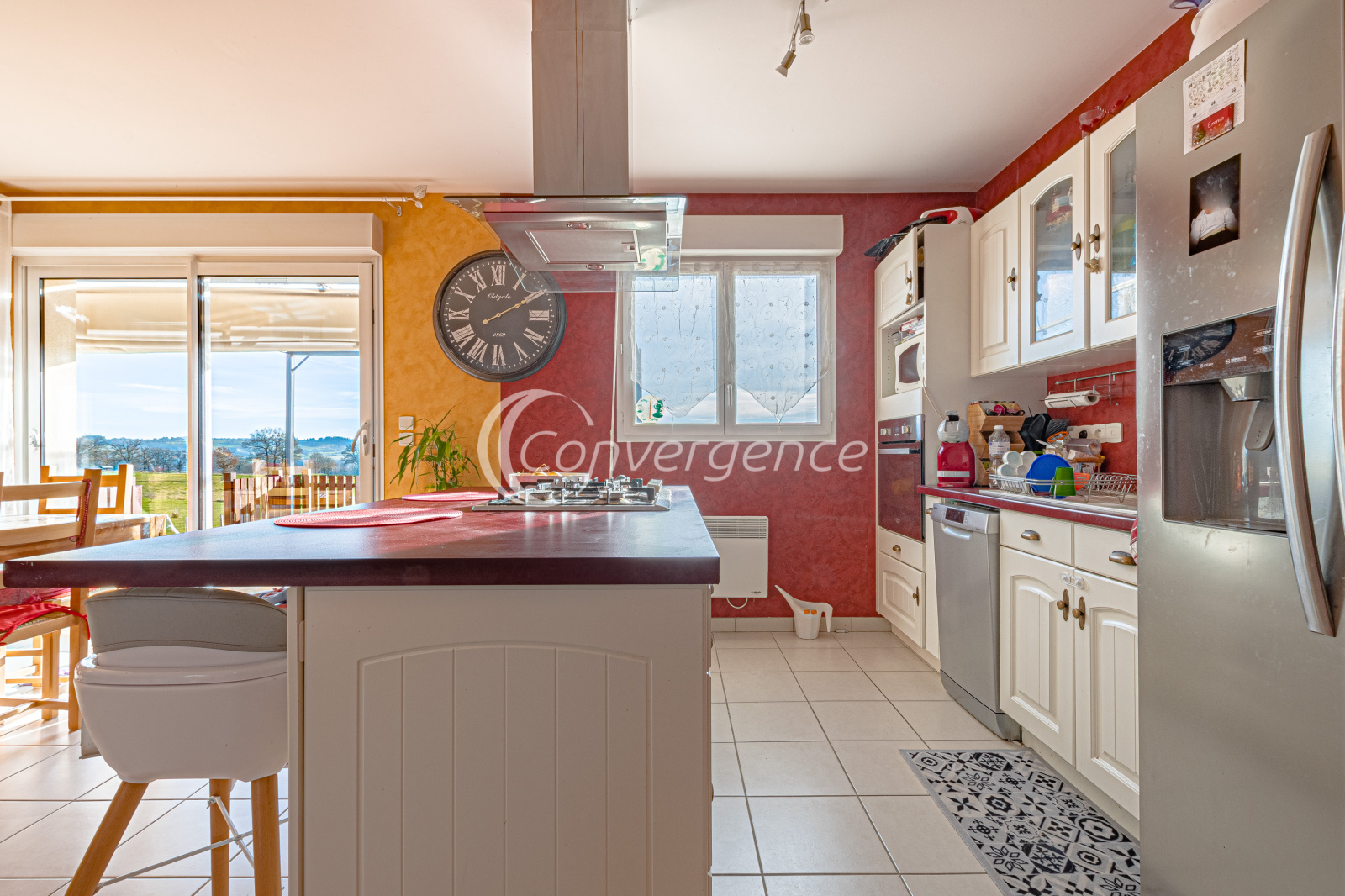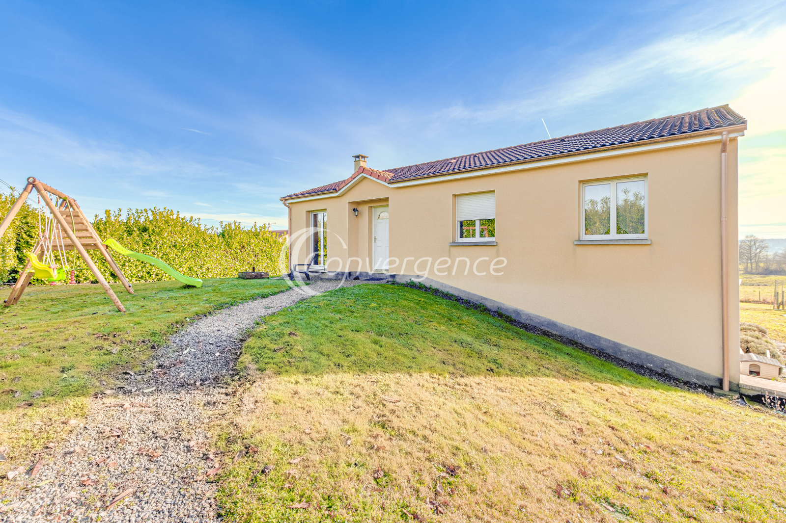 Agréable maison édifiée en 2011 offrant une belle vue dégagée sur la campagne. La maison dispose d'une entrée, un séjour avec poêle à bois, une cuisine aménagée et équipée donnant sur une terrasse exposée Sud, trois chambres, une salle de bains avec baignoire et douche, un wc séparé. Le sous-sol complet de 91 m² comprend une buanderie, un deuxième wc, des espaces de rangement bien définis, un grand garage deux véhicules. Jardin sans vis à vis, clôturé, parcelle de 2350 m². Assainissement individuel. Taxe foncière 580 €. La commune de Saint Jean Ligoure vous assure le transport scolaire, vous propose un bar / restaurant / épicerie pratique pour le quotidien. La présence d'assistantes maternelles et d'une crèche à 6 km seront un véritable atout.