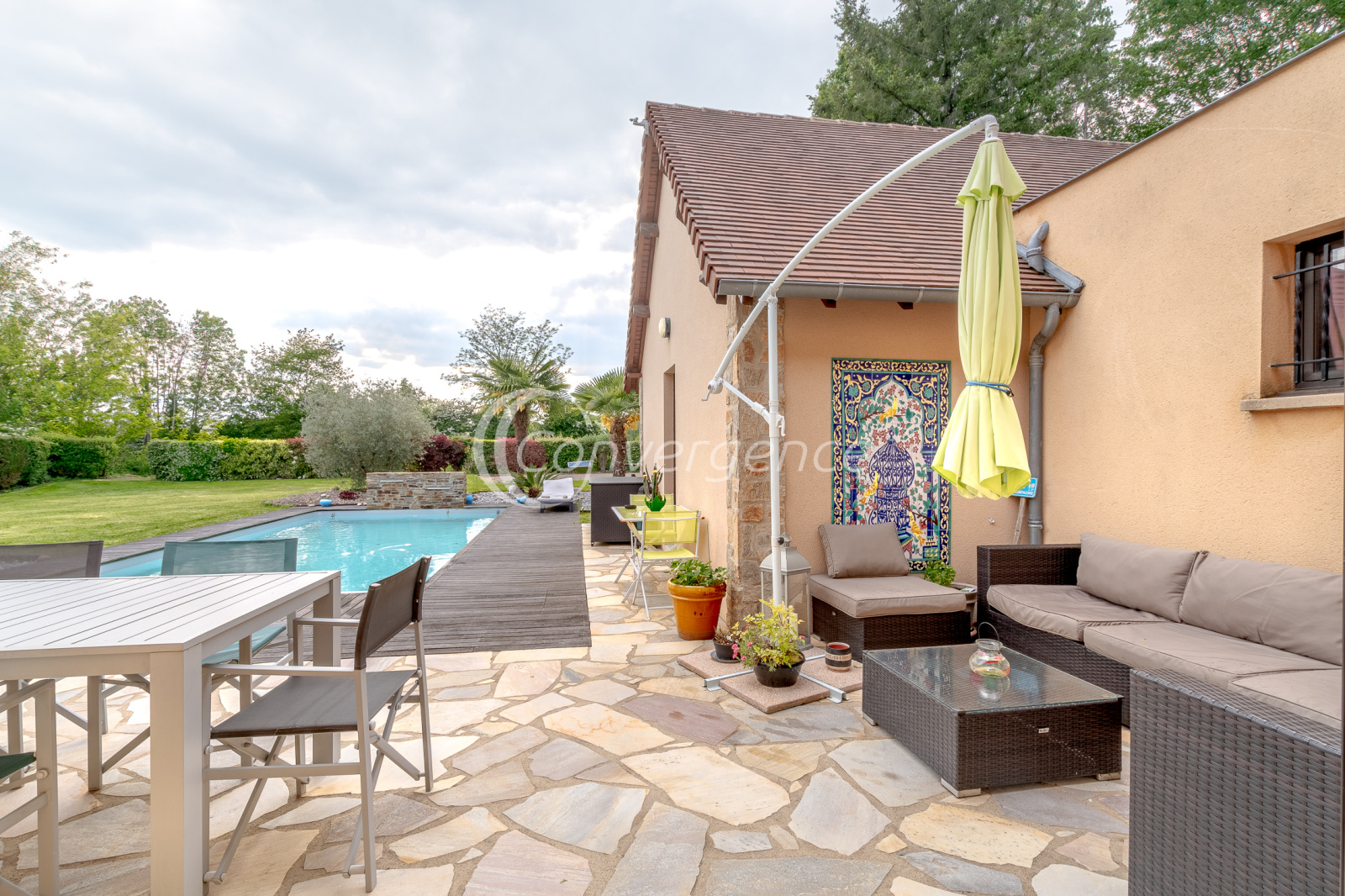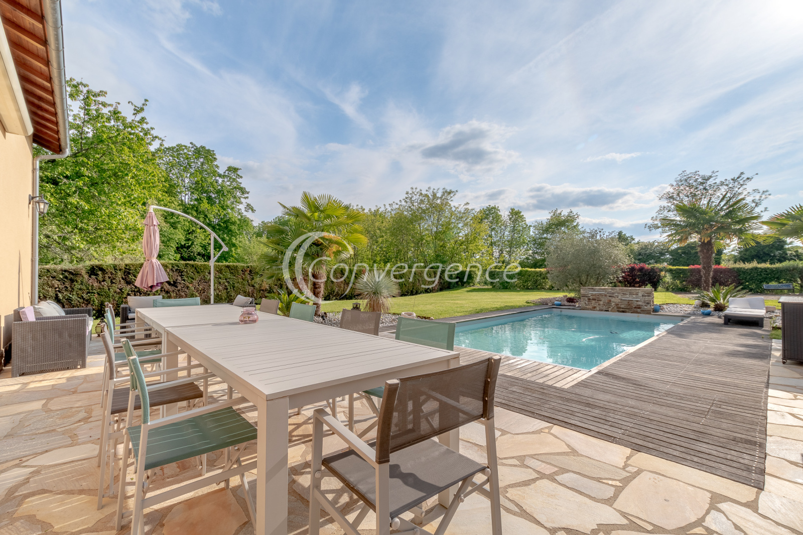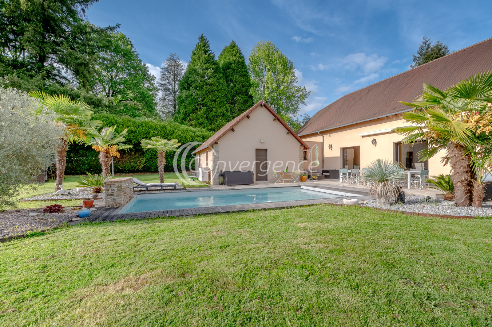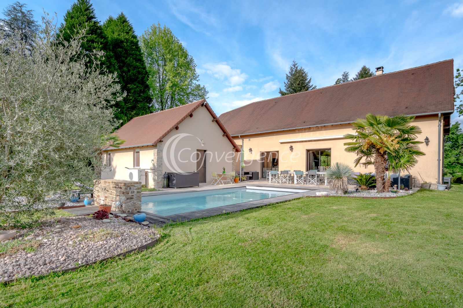 Dans un secteur recherché de Saint Yrieix la Perche, agréable propriété parfaitement entretenue de 275 m² implantée sur un parc de près de 3500 m² avec piscine. Construction traditionnelle pour cette maison d'architecte édifiée en 1998 qui bénéficie de belles prestations avec sa façade en pierres de Saint Yrieix et sa terrasse en pierres du Brésil. La pièce de vie de 87 m² profite d'une belle hauteur avec son toit cathédrale, une pièce spa saura séduire les amateurs de détente et de bien être, la cuisine de 16 m² donne sur une agréable terrasse. Côté nuit, une suite parentale de 29 m² avec salle d'eau et wc privés, un bureau, un wc invités. A l'étage, une mezzanine distribue 3 chambres, une salle d'eau et un wc. Une arrière cuisine à usage de buanderie donne accès directement au garage double de 43 m² avec portes motorisées. Piscine au sel chauffée 4 m x 9 m de 2012 . Menuiseries en aluminium, volets roulants. Plancher chauffant électrique au rez de chaussée. Parc arboré et paysager, un puits. Cadre dépaysant avec sa vue sur le lac tout en restant à proximité des commerces et du centre de Saint Yrieix la Perche.
