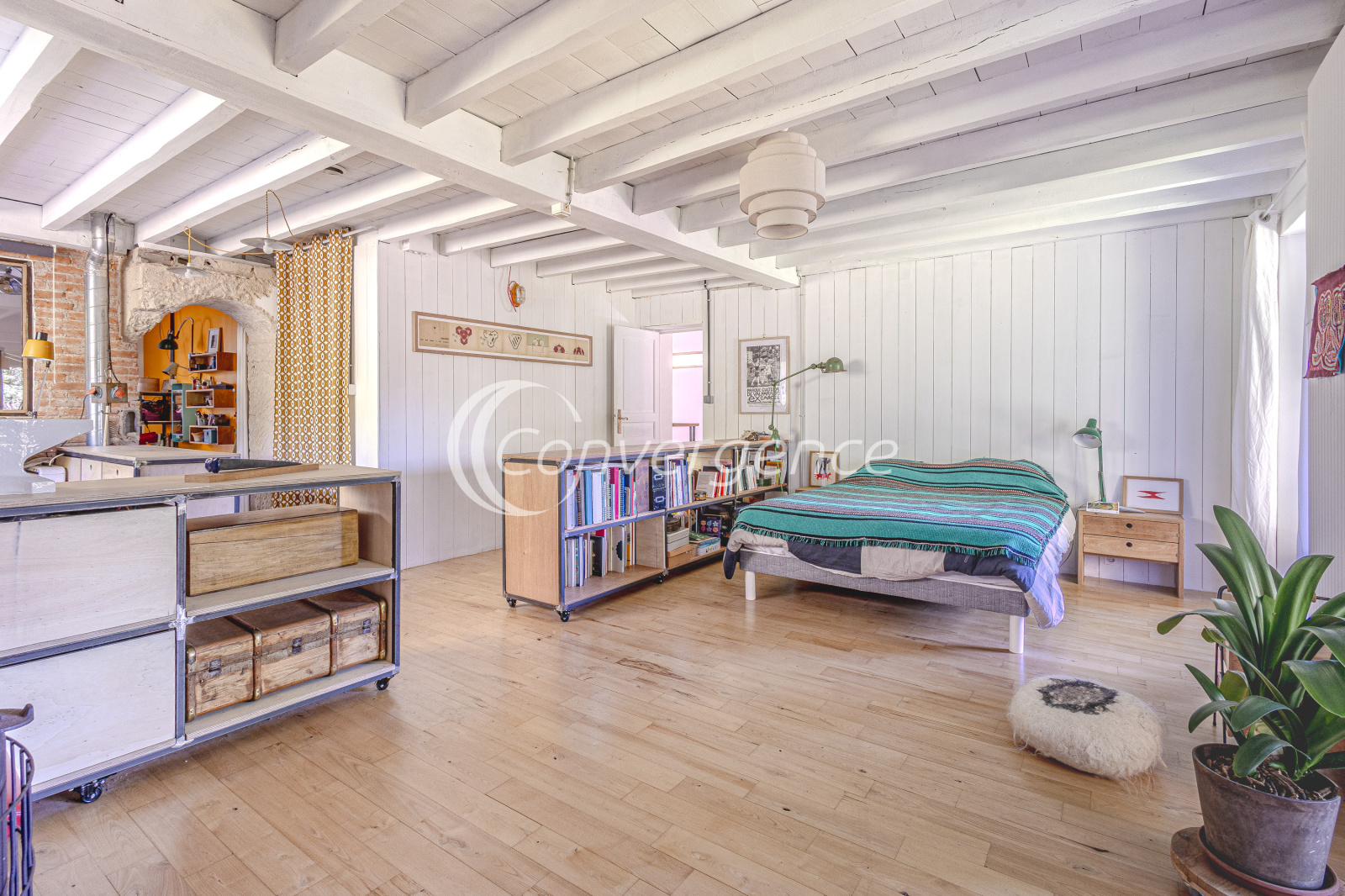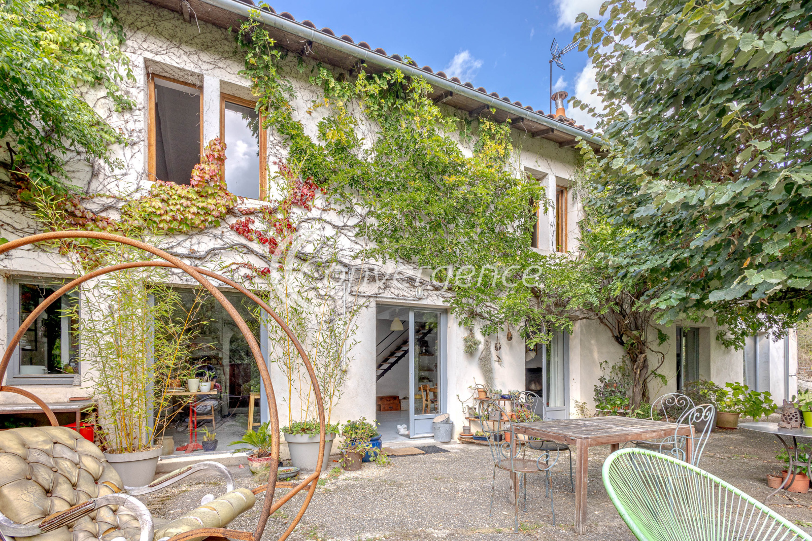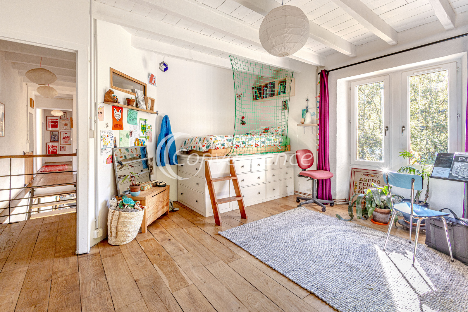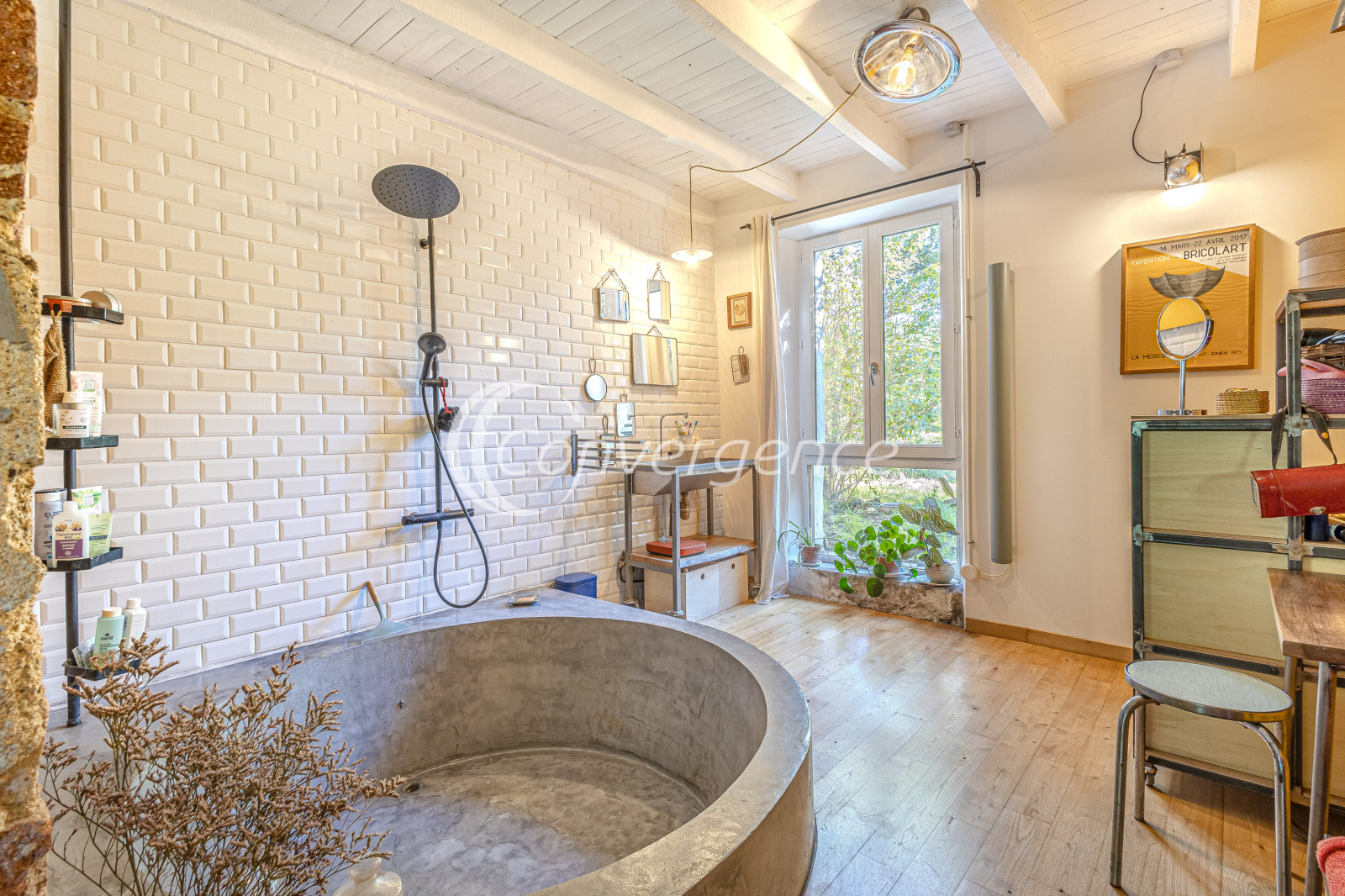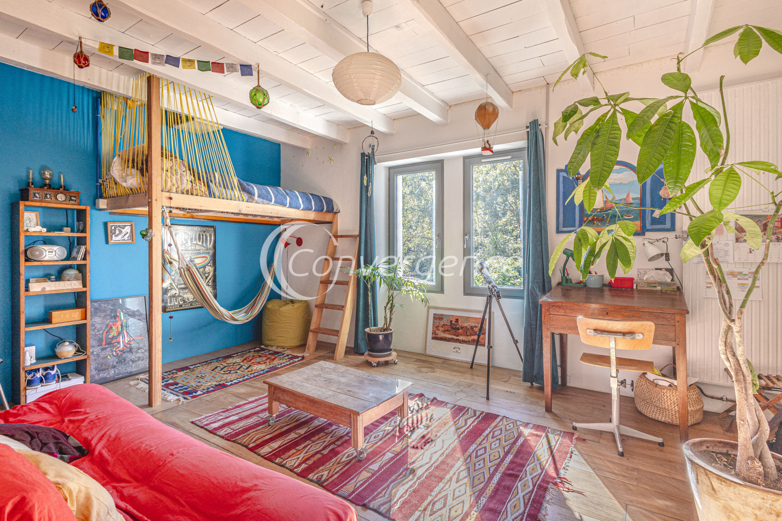 Cette maison de 170 m2 se compose d'une grande pièce de vie de 66 m2 donnant sur une agréable terrasse ombragée par une magnifique glycine, un cellier, une cave. A l'étage, un espace bureau sur le palier, 3 belles chambres dont une suite parentale de plus de 35 m2 avec poêle à bois, un bureau, un WC.