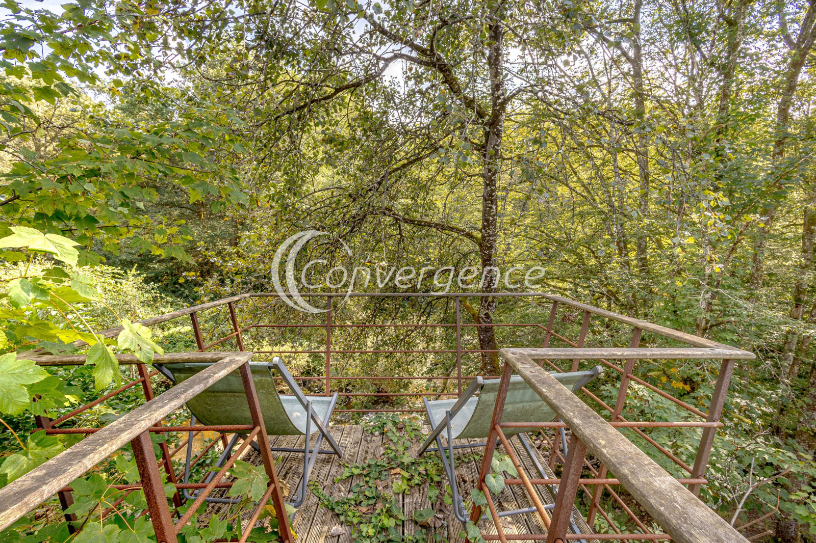 Côté extérieur une parcelle de près de 4500 m2 composée de plusieurs espaces qui vous apportera sérénité et plaisir des yeux avec de nombreuses variétés de plantes et d'arbres rares. Située à côté de la rivière de la Glane, elle vous offrira de quoi contempler, pêcher ou se rafraîchir.