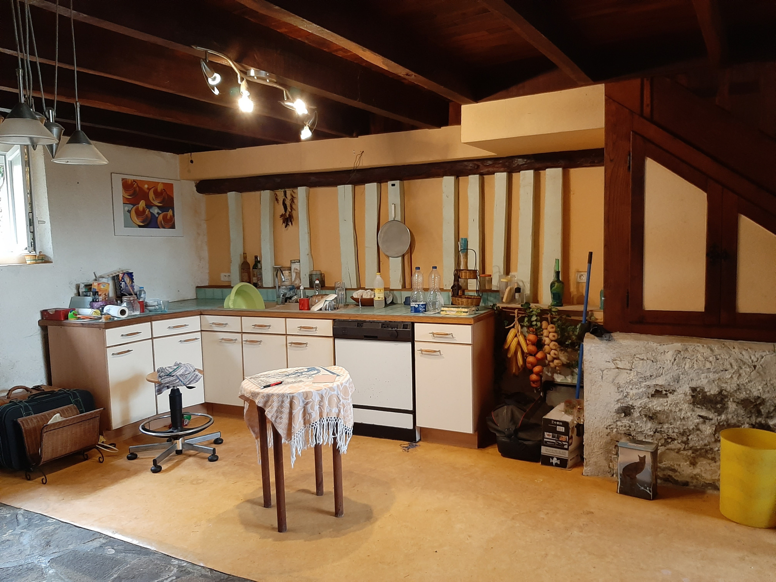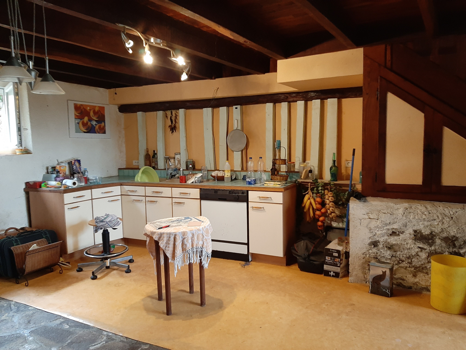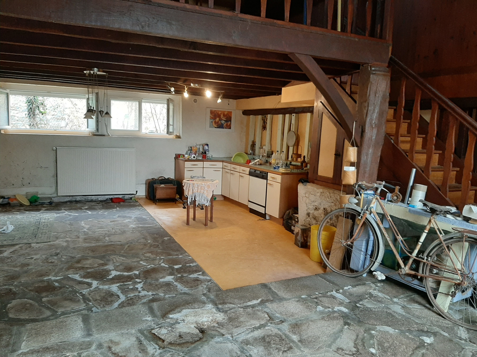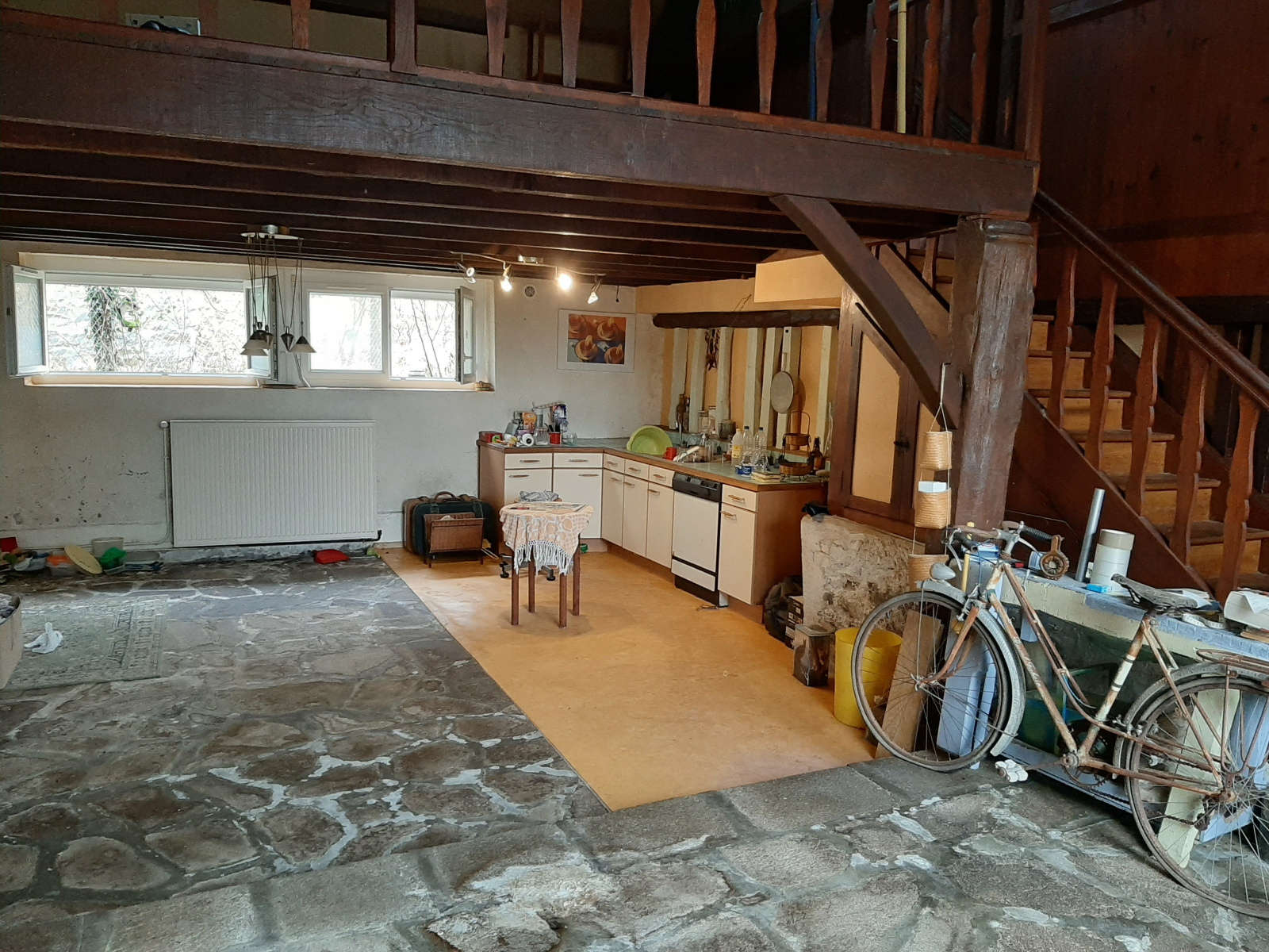 avec cheminée ouverte et cuisine ouverte