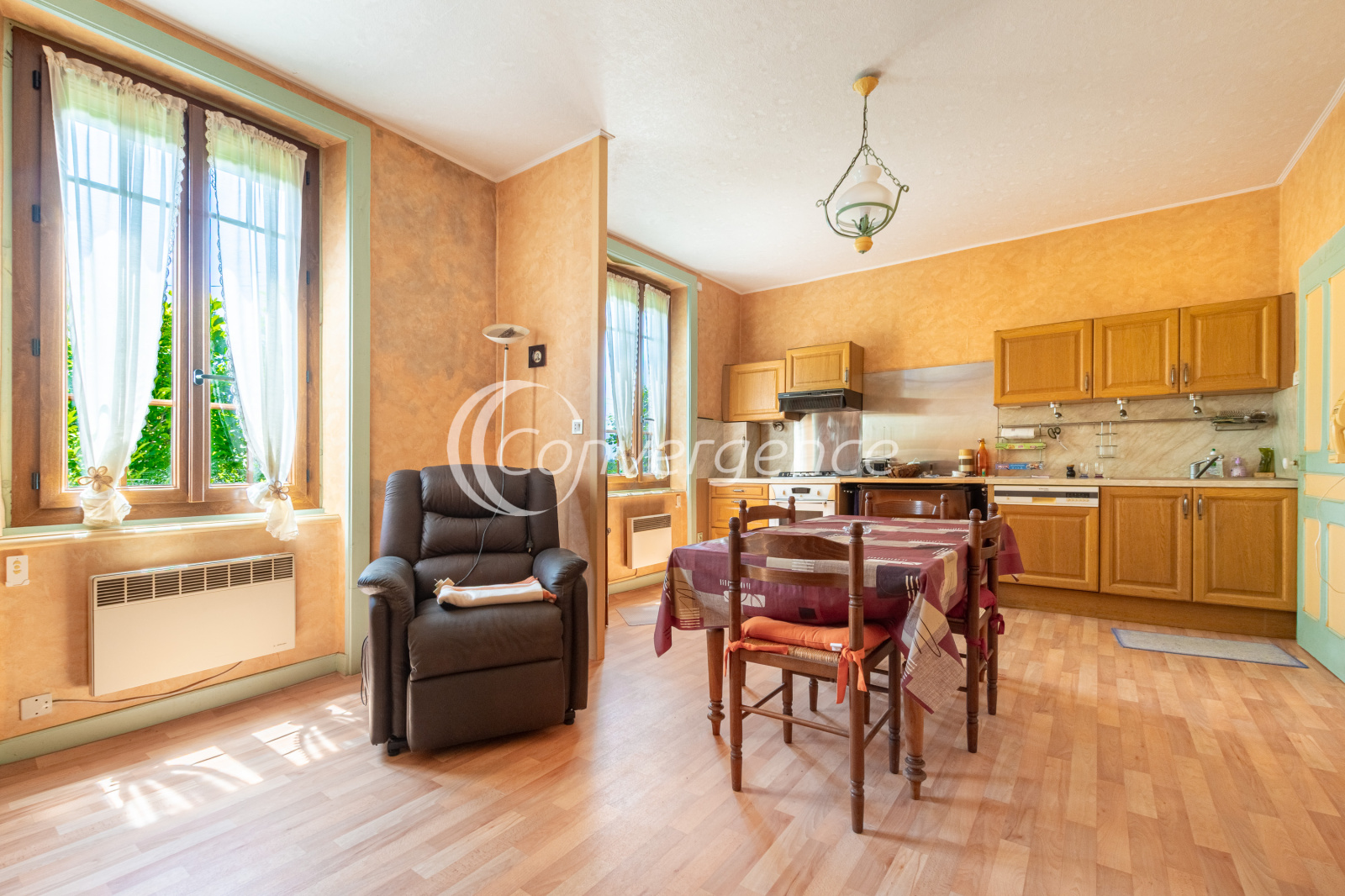 Sur la commune de Magnac Bourg, maison en pierres de 90 m² édifiée dans les années 30' profitant d'un grand atelier indépendant de 41 m², un garage motorisé de 20 m², un bûcher, un poulailler et deux petites étables. La parcelle de 1800 m² profite d'un puits et d'un jardin cloturé et plat. La maison comprend une entrée, un séjour avec cuisine, une salle à manger, une salle de bains, un wc. A l'étage deux grandes chambres dont une avec balcon. Allées en enrobés, double vitrage pvc imitation bois, volets roulants électriques. Assainissement à refaire. Tous commerces à Magnac Bourg : Intermarché, pharmacie, boulangerie, boucherie, buraliste, coiffeur... Ecole et ramassage pour le Collège de Saint Germain les Belles.