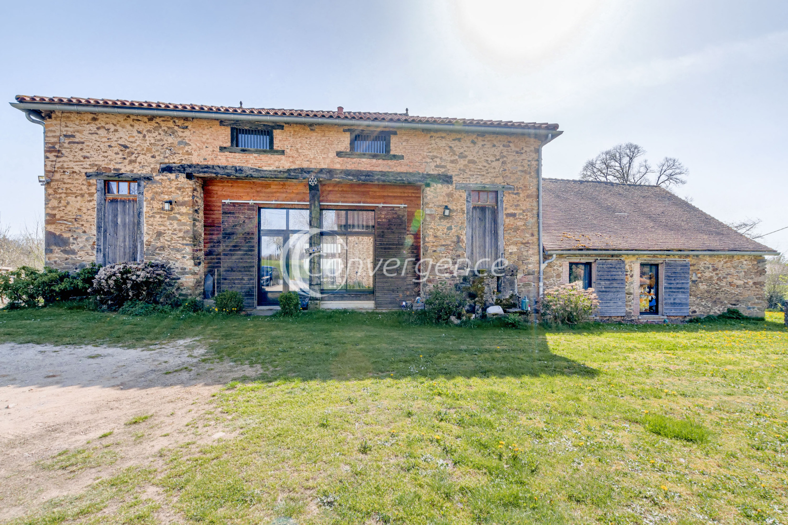 A Magnac Bourg, dans un hameau situé à 3 minutes de l'A20 au calme avec une magnifique vue dégagée depuis la terrasse de 30 m² exposée sud. La maison a été judicieusement aménagée avec goût et modernité. Vaste espace à vivre de 65 m² très lumineux avec ses grandes baies vitrées, une cuisine Schmidt élégante et fonctionnelle, un cellier et un wc.Une première chambre ou bureau communique avec le salon, le coin nuit se compose d'une salle d'eau, un wc, trois chambres dont une suite parentale avec dressing et salle de bains privée. Chauffage au sol par géothermie, volet roulant électrique dans le salon, volets bois sur le reste des ouvertures. Huissieries en aluminium. Le plancher du grenier a été refait, cet espace au dessus du salon pourrait être aménagé. Grange indépendante de 100 m² parfaite pour stationner les véhicules. Belle parcelle de terrain plat de 3500 m². Magnac Bourg dispose de tous les services et commerces de proximité et d'une école.