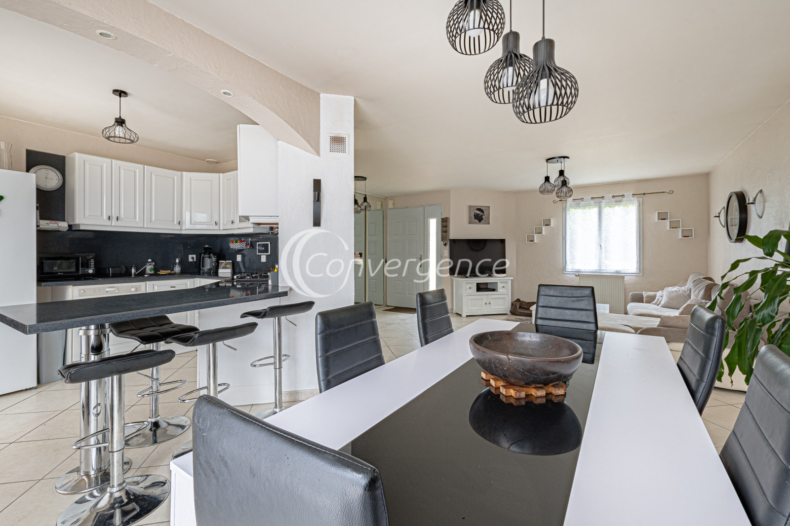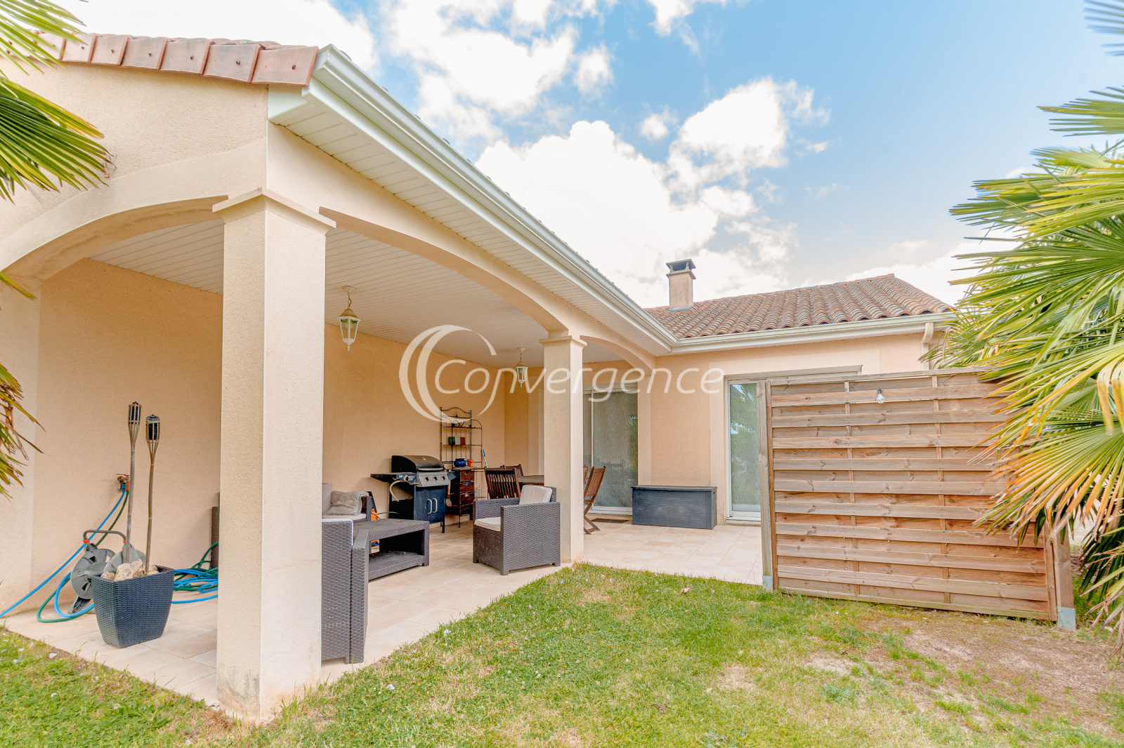 Sur la commune de Condat Sur Vienne, à seulement 3 min des portes de Limoges, spacieuse maison de 130.7 m², 4 chambres et de plain-pied sur un beau terrain plat paysager de 2000 m². La maison comprend un espace à vivre avec cheminée et cuisine ouverte de 45 m², un salon attenant idéal pour plus de tranquilité. De part et d'autre du salon, deux espaces nuit. Le premier coin nuit propose 3 chambres dont une suite parentale avec dressing et salle de bains avec douche privée, les deux autres chambres ont un accès commun à une salle d'eau. Le second espace se compose d'une grande chambre dans laquelle vous profitez d'une douche et d'un lavabo, parfait pour adolescent, parents ou pour recevoir. Deux wc dont un avec lave mains. Une buanderie est accessible depuis la cuisine et vous amène vers un garage double de 34 m². Une loggia de 18 m² et une terrasse sont idéales pour profiter des extérieurs. Vous ne pourrez qu'être séduits par la végétation soigneusement sélectionnée, le jardin est entièrement cloturé et arboré avec un portail motorisé, un abri de jardin.